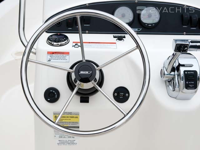 Le poste du capitaine est situé sur le cockpit - il est équipé d'un volant réglable, d'un canapé compact pour deux personnes et d'un tiroir intégré pour les objets personnels. La livraison du navire comprend une tente pliante, qui est installée au-dessus du cockpit et le couvre du soleil. Derrière le poste de capitaine se trouve un casier avec une perche pour les cannes à pêche.
