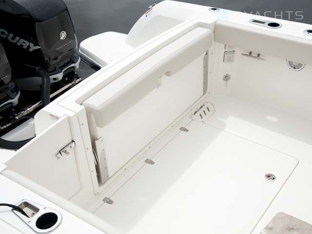 Vous pouvez aller à l'arrière par un petit passage à côté du canapé. Il dispose d'une plate-forme d'accès à l'eau et de quatre supports de canne à pêche. Le Boston Whaler 270 Vantage est équipé d'une installation de deux moteurs hors-bord de 150, 200, 225, 250 ou 300 ch. Le réservoir de carburant du navire contient 622 litres, le réservoir d'eau - 76 litres. La vitesse de croisière du navire est de 22 nœuds, le maximum est de 38 nœuds.