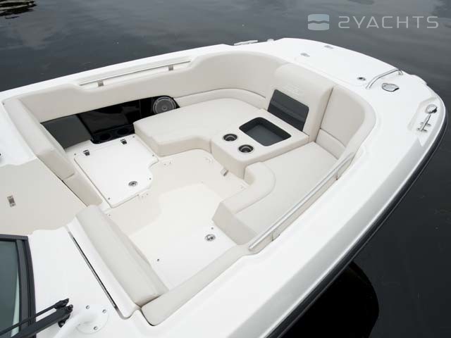 Le modèle fait référence au type de «bow rider», car il a un nez ouvert avec des sièges pour plusieurs personnes. Il dispose de deux canapés d'angle qui peuvent être transformés en transats pour bronzer, ainsi que d'une table rétractable compacte. Vous pouvez entrer dans la proue du navire par le passage dans le pare-brise.