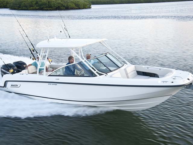 Le bateau de plaisance Boston Whaler 270 Vantage est en production depuis 2014. Il a un corps en fibre de verre renforcé d'une longueur de 8,61 mètres et d'une largeur de 2,74 mètres. Le navire est équipé de sièges pour douze passagers et sa capacité de charge est de 1679 kilogrammes.