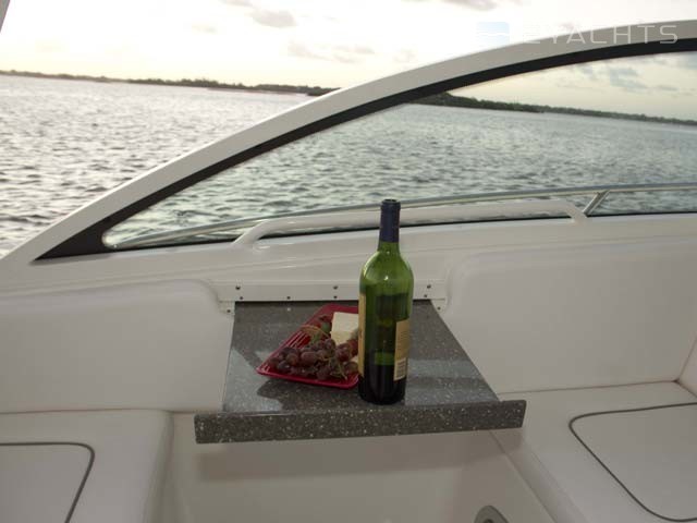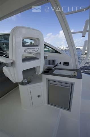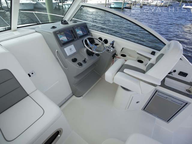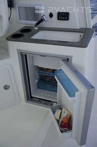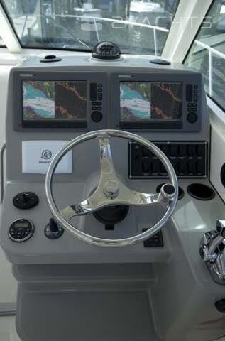 Sur le cockpit du navire se trouve un toit dur avec des supports pour le remorquage et des cannes à pêche. En dessous se trouve un poste de capitaine avec un système de contrôle électronique, un volant réglable et un fauteuil pivotant, ainsi que des sièges pour deux passagers, entre lesquels une table coulissante est installée. Un gril rétractable avec tiroirs pour aliments est monté dans l'un des sièges. Côté tribord, il y a un évier et un tiroir spacieux pour les effets personnels.