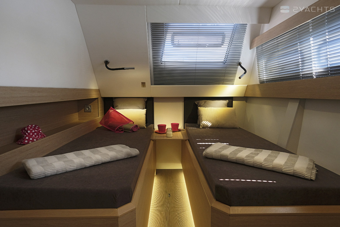 Le cockpit du navire est équipé d'un cockpit fermé avec un toit rigide équipé de deux trappes d'observation. Sur les côtés, il y a des passerelles clôturées avec des balustrades métalliques et menant à une plate-forme ouverte à l'avant, où se trouvent plusieurs chaises longues spacieuses. À l'arrière du modèle, il y a deux plates-formes d'accès à l'eau avec des échelles amovibles et des mains courantes en métal, ainsi qu'une attache de remorquage. Le cockpit extérieur est équipé d'un canapé moelleux pour plusieurs personnes, d'une table amovible et de deux aérateurs.