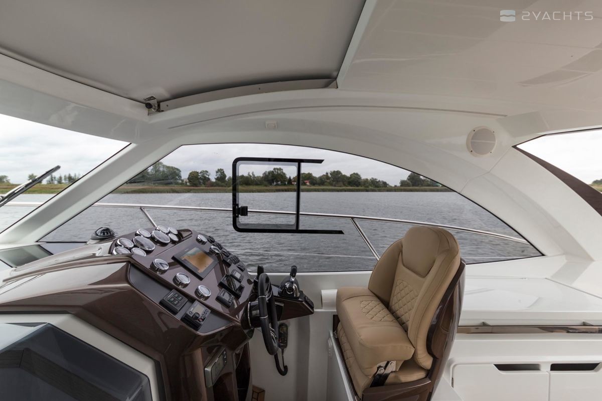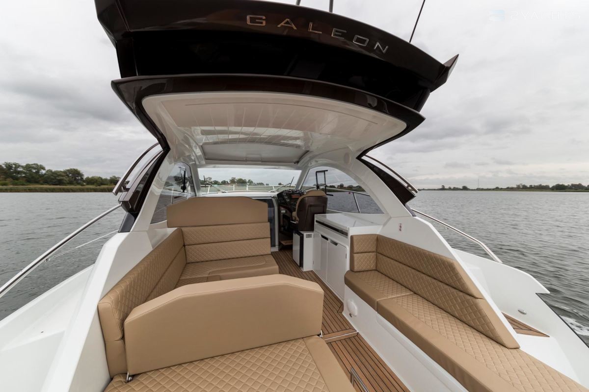 Le Galeon 335 HTS est équipé de deux options pour les moteurs Volvo Penta au choix: 2 x 225 ch ou 2 x 350 ch Avec une réserve de carburant maximale de 750 litres dans le réservoir, le yacht peut effectuer des transitions à une distance maximale de 200 miles de la côte.