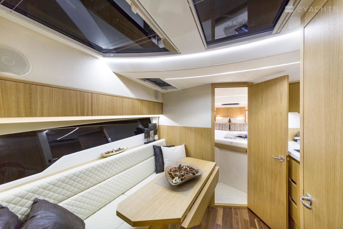 La coque de glissement du navire est faite de fibre de verre utilisant la technologie d'infusion sous vide. La conception du yacht a été réalisée par le designer Enrico Gobbi. Le modèle avec le toit rigide a reçu des formes dynamiques et un vitrage panoramique de la cabine et du pont inférieur. L'intérieur du navire est disponible pour les clients en plusieurs finitions: noyer, chêne clair, ébène ou acajou.