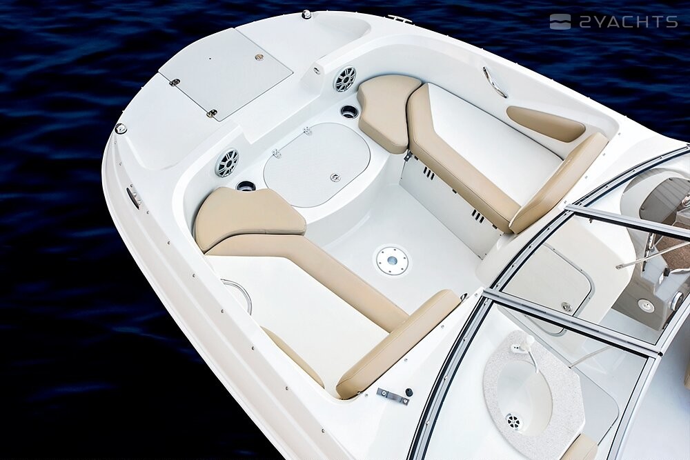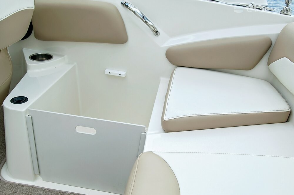 Le cockpit spacieux 201DC dispose d'un compartiment de rangement dans le plancher, d'un tapis amovible, de 2 chaises en forme de bol de style sport: pour le barreur et l'un des passagers. La configuration de base du bateau comprend un tableau de bord avec éclairage, un volant réglable en hauteur, un allume-cigare 12 V et un système stéréo. Pour la commodité des passagers, un placard sec et des porte-gobelets en acier inoxydable sont installés.