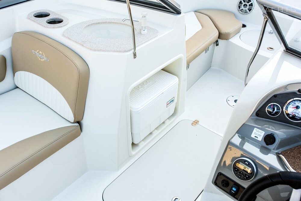 La longueur du Stingray 201DC est de 6,1 m, la largeur de 2,54 m, le tirant d'eau maximum de 0,37 m Le chantier naval prévoit l'installation d'un moteur hors-bord à essence Suzuki de 175 ch. L'approvisionnement en carburant est de 174 litres.