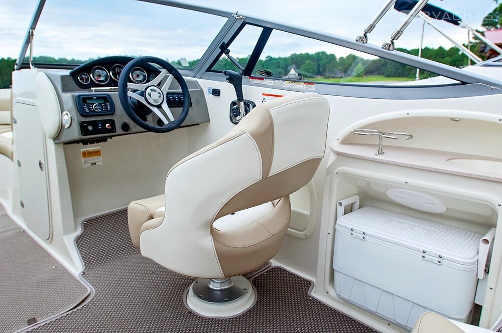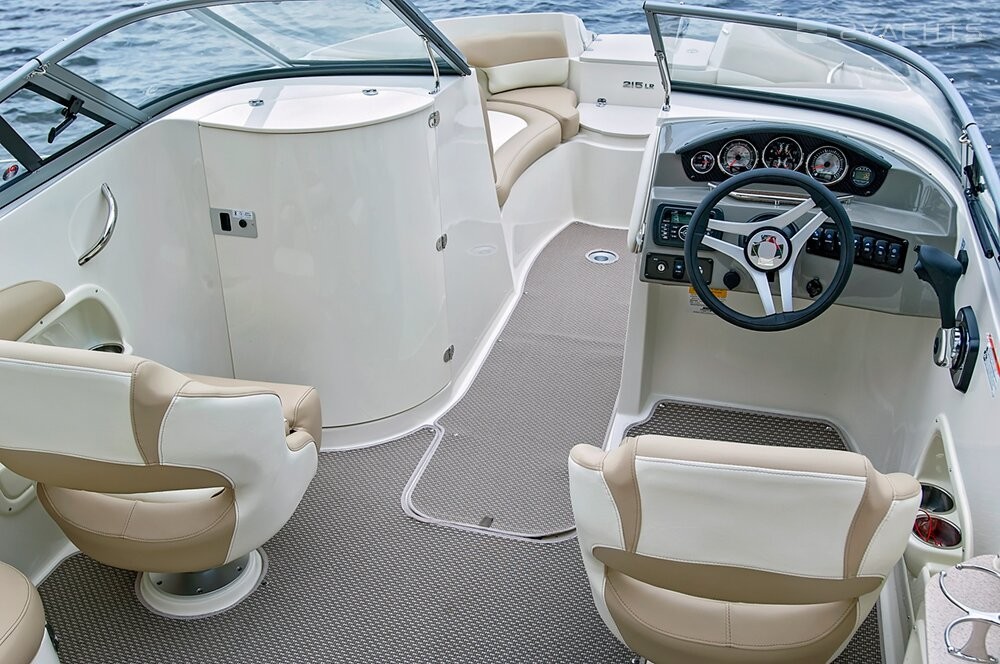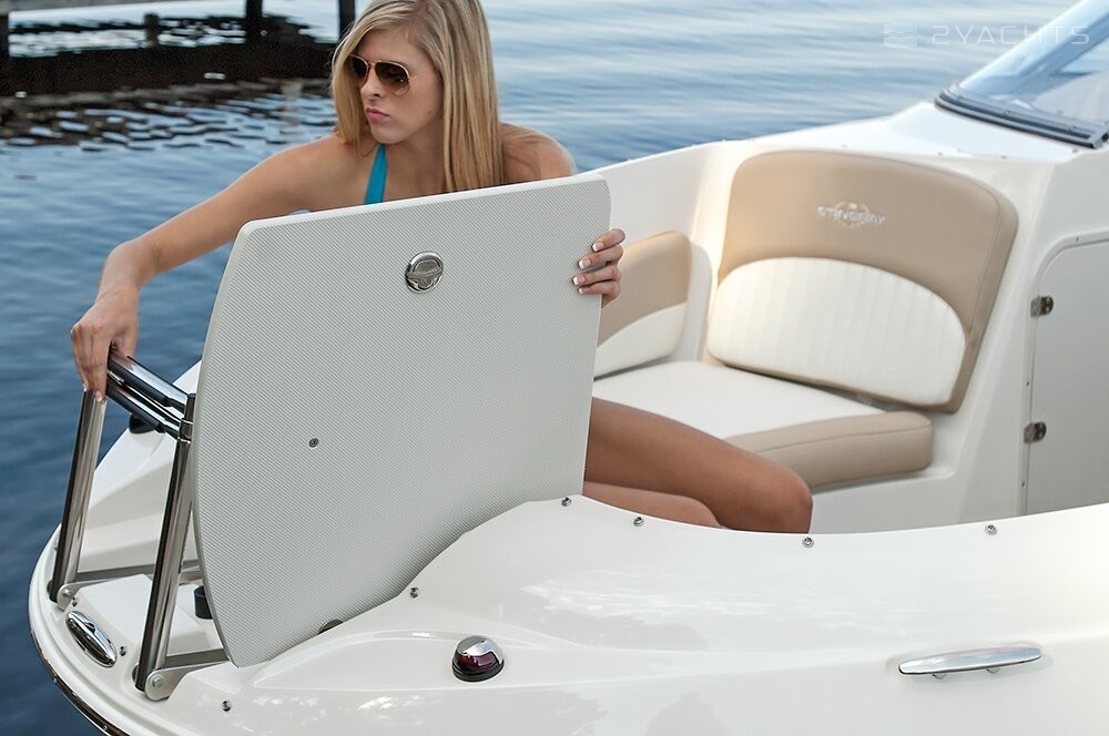 Stingray 215LR avec une longueur de corps de 6,7 mètres accélère à 55,2 nœuds. L'équipement standard offre 5 options pour les moteurs à essence stationnaires: Volvo Penta V6-200 200 ch, MerCruiser 4.3 MPI 200 ch, Volvo Penta V6-225-C 225 ch, MerCruiser 5.0 MPI 260 ch Volvo Penta V8-270-C 270 KM La réserve de carburant est de 174 litres.