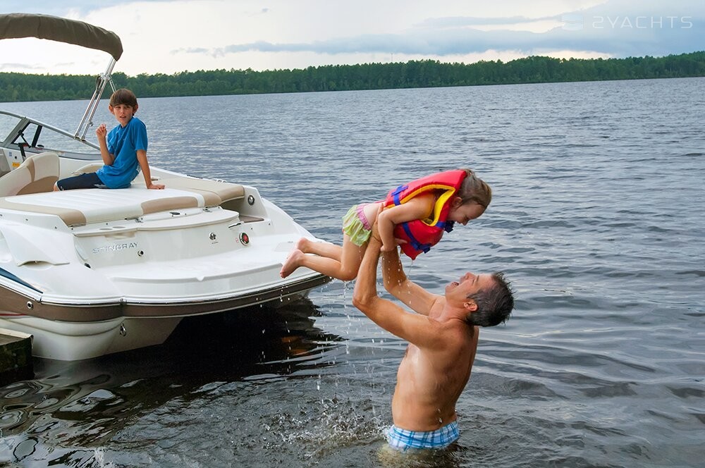Le Stingray 235CR a une longueur de coque de 7,30 mètres et un tirant d'eau maximum de 0,48 mètres. Poids à sec - 1890 kg. Moteur Mercruiser 4.3 MPI A1 220 ch vous permet d'atteindre des vitesses allant jusqu'à 59 nœuds. Capacité de carburant - 212 litres.