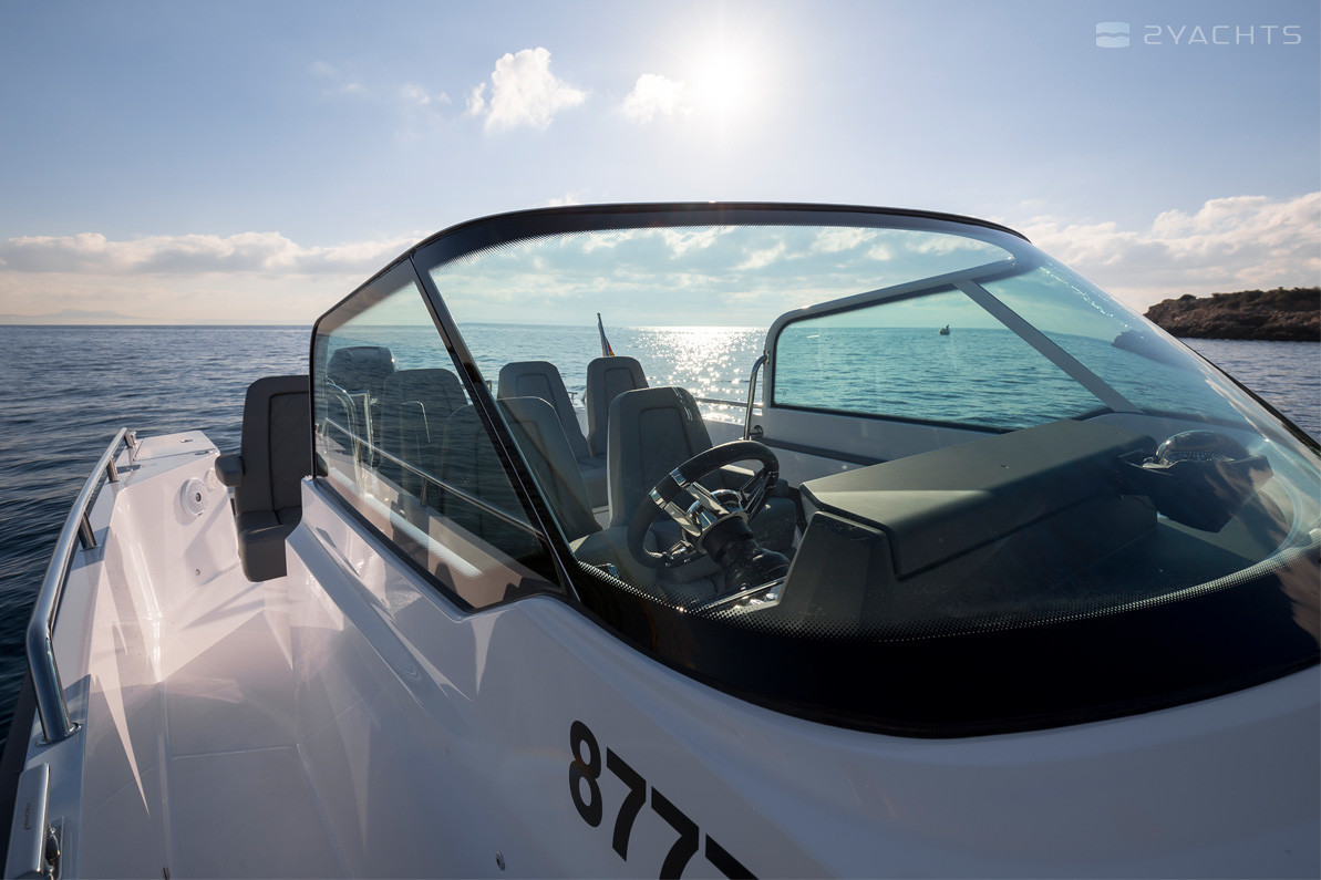 Nella cabina di pilotaggio del modello, sul lato di dritta, c'è un posto di capitano dotato di un volante regolabile, display elettronici, una scatola per effetti personali e due sedie girevoli morbide. Sul retro c'è un morbido divano per quattro persone, di fronte al quale è montato un tavolo pieghevole in legno e lungo i lati sono installate ringhiere metalliche. Sul lato sinistro è presente una cucina estraibile con lavello, grill e diversi cassetti per alimenti. La cabina aperta Axopar 28 Open ha un divano ad angolo che può essere convertito in un letto matrimoniale, nonché una stanza separata con un bagno compatto.
