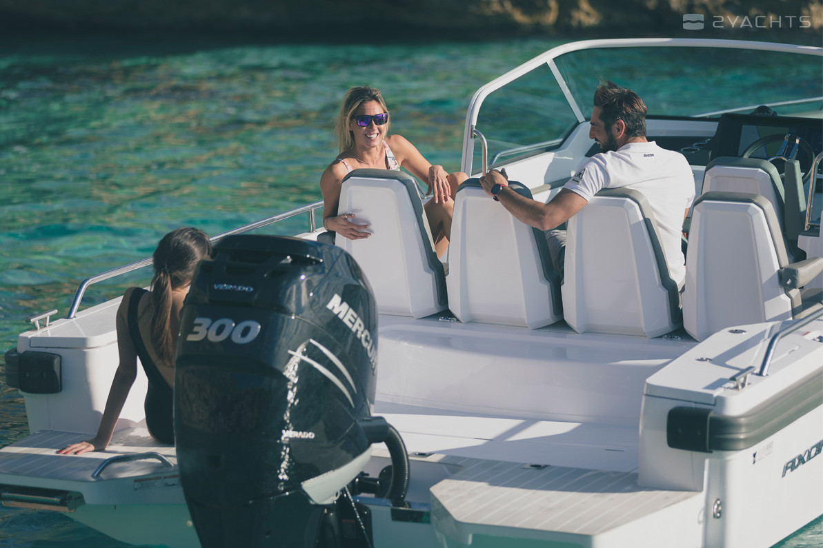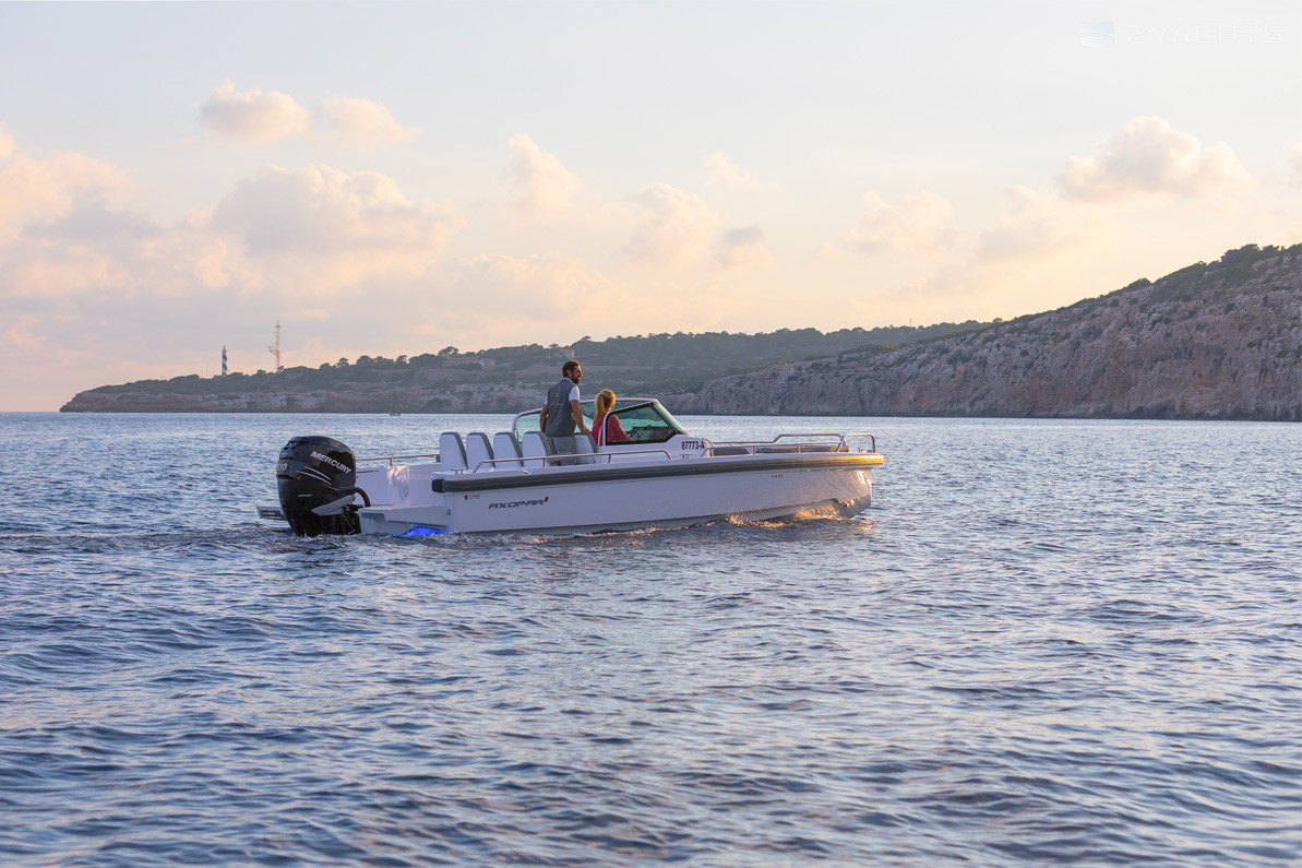Axopar 28 Open è una imbarcazione da diporto prodotta dal 2014. Ha la certificazione internazionale CE (B) e può essere utilizzato in mare, fino a duecento miglia nautiche al largo. Lo scafo è realizzato in fibra di vetro, la sua lunghezza è di 8,6 metri, larghezza - 2,85 metri e pescaggio - 0,75 metri. La nave ha otto posti e due cuccette per i passeggeri.