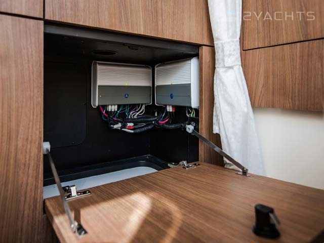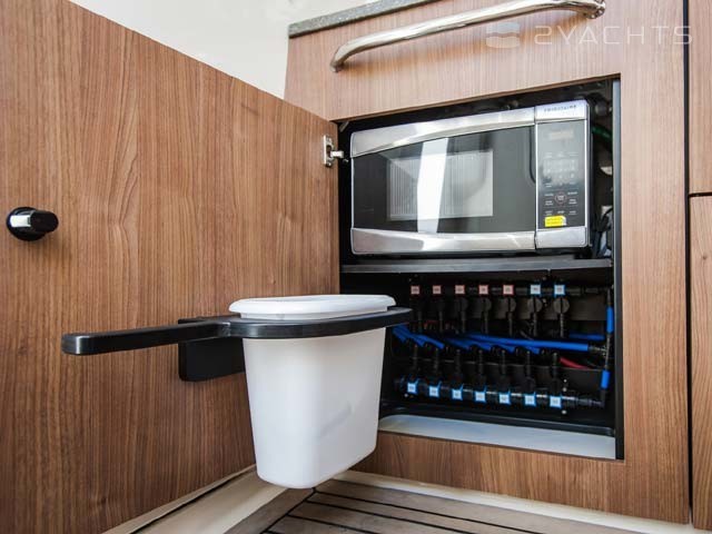 La barca è dotata di un bagno con lavandino e armadio. A poppa c'è un divano pieghevole, scomparti per sci d'acqua, un aeratore compatto e due piattaforme per l'accesso all'acqua. La nave è dotata di tre motori fuoribordo da 350 CV. Il volume del serbatoio per il carburante è di 1.514 litri, per l'acqua dolce - 170 litri.