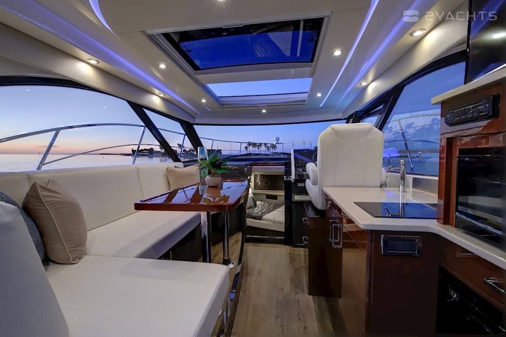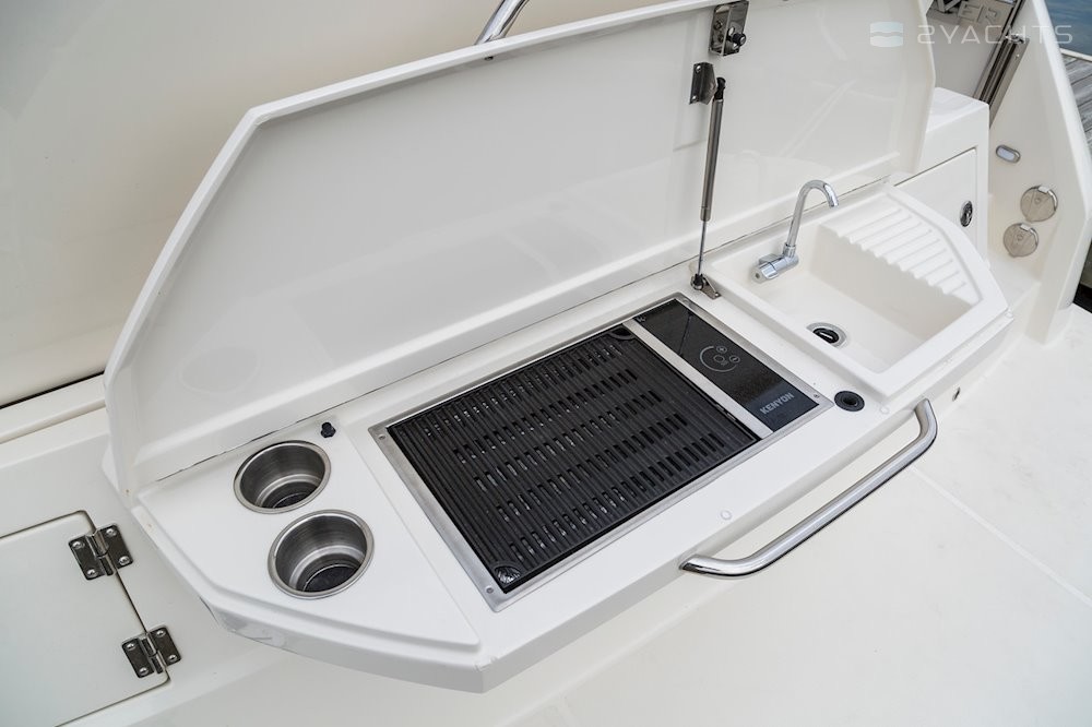 Davanti al pannello di controllo, una sedia al volante è installata in uno stile sportivo con la possibilità di controllare la seduta o la posizione eretta. Per risparmiare spazio sul ponte, la sedia è montata su uno degli armadietti della cucina e immediatamente dietro c'è una cucina dotata di miscelatore, forno a microonde, forno e piano cottura. Di fronte alla cucina c'è un divano diretto e un tavolo che forma una zona pranzo.