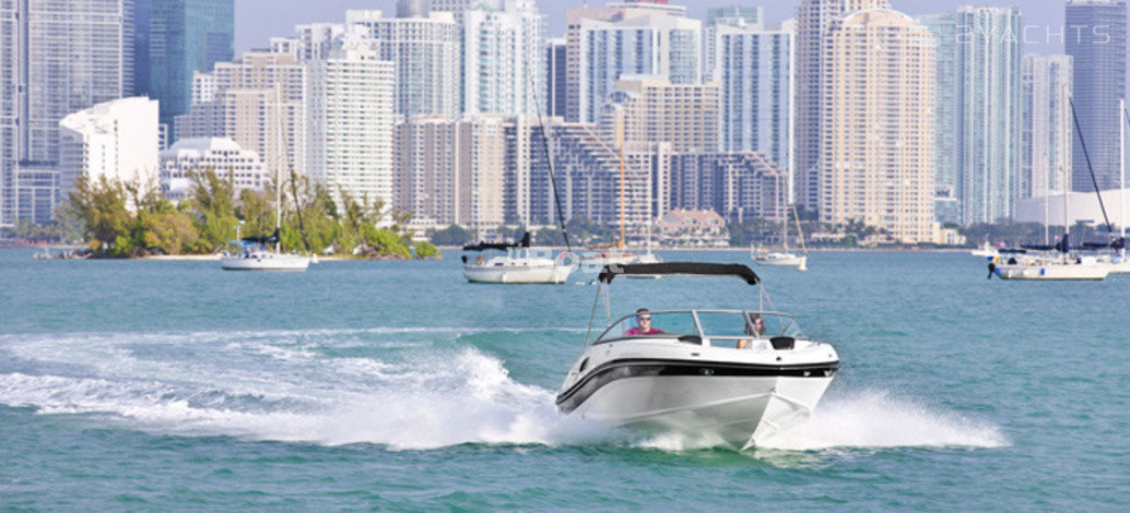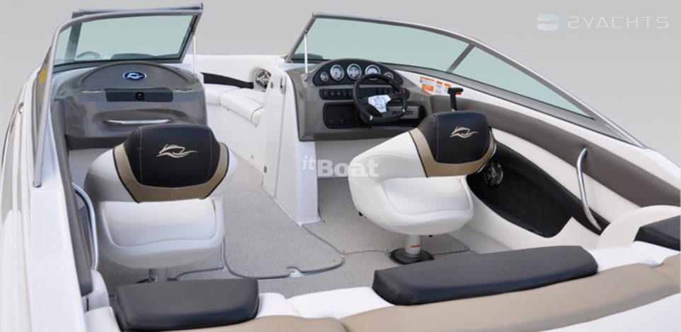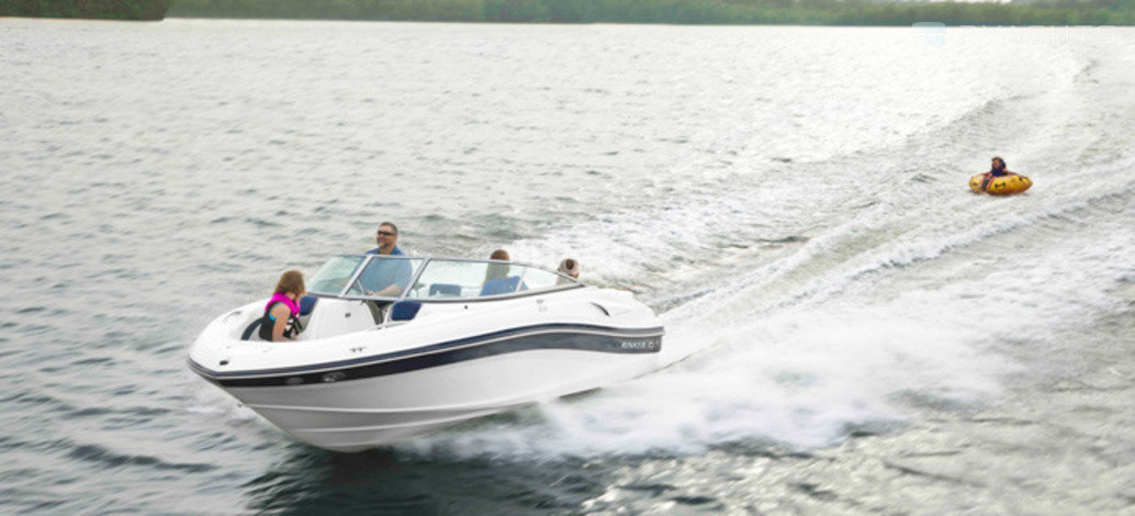 Sull'imbarcazione è installato un telaio ad arco rigido per proteggere la superficie del ponte del biminitope. Il Rinker 216 Captiva BR può essere utilizzato come veicolo di rimorchio per il wakeboard e il wakeboard.