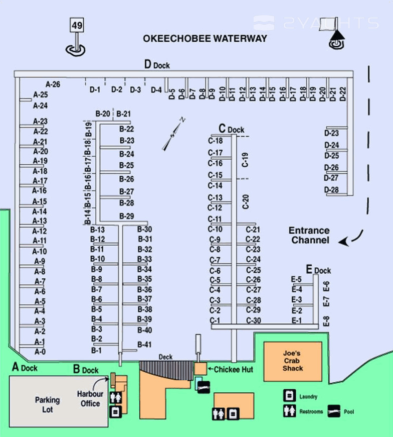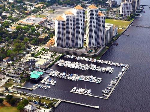 Legacy Harbour Marina is located on the Okeechobee Waterway south side of marker #49 on the Caloosahatchee River near downtown Fort Myers. The 131-slip marina has 40-ft to 120-ft slips surrounded by the largest floating breakwater on the Gulf of Mexico. The floating docks are state-of-the-art & the marina is a full-featured facility including pump-out, electric metered, heated pool, sundeck, fitness center, cable TV, laundry, air-conditioned showers & wireless Internet connections. Hotel on-site. Grocery, restaurants and Edison & Ford Winter Estates are within walking distance. Legacy Harbour Marina has been designated as a Clean and Resilient Marina by the Florida Department of Environmental Protection.