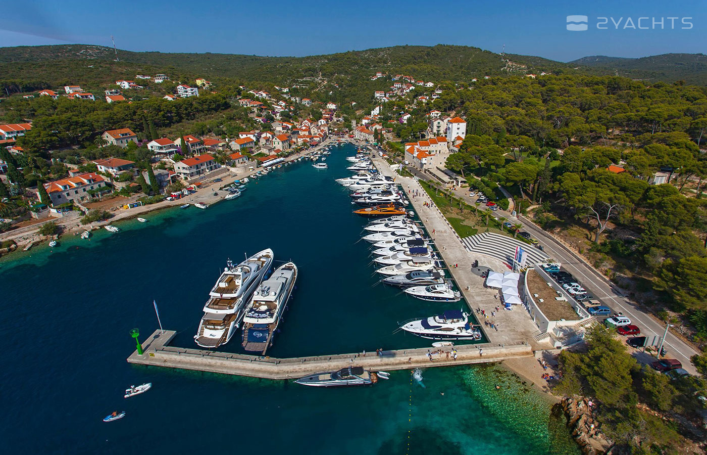 Martinis Marchi Marina is a new superyacht berth on the north side of the Croatian island of Solta nestled in a beautiful location beside the luxurious Martinis Marchi Heritage Hotel & Restaurant. 50 berths of the highest quality have been constructed, equipped with moorings, electricity and water, offering a safe harbour for yachts measuring up to 35m, larger vessels up to 60m+ can be accommodated on the outside of the breakwater. An amphitheatre with 500 seats is built in the style of ancient Greek theatres for summertime performances. MY Luxury charter runs out of Martinis Marchi Marina during the high season.