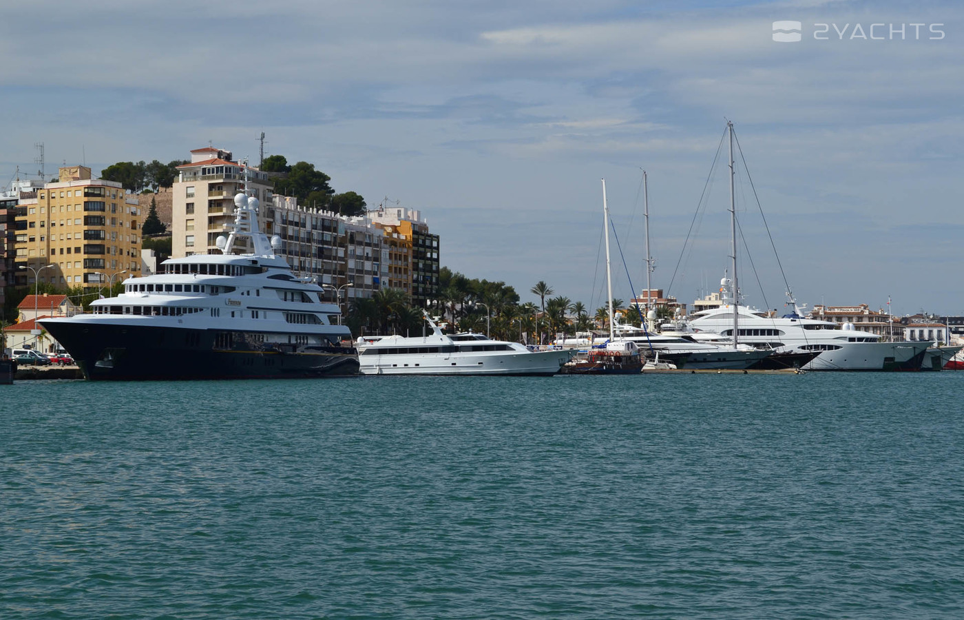 Welcome to Port Denia Superyacht Marina, one of the most luxurious marinas on the Mediterranean with exceptional facilites and a full service shipyard on site. The marina is very popular as a wintering destination being the perfect place to carry out a refit or repairs, with the shipyard barely 100m away and the town centre even closer. Providing stern-to berths for up to 65m and a 138m berth alongside, 1000 amps shoreside power is available. Ibiza and Formentera are only 45 miles away. Denia offers an alluring and lightly-worn blend of history, culture and modern luxury. It is a UNESCO designated creative city of gastronomy where you will find 3 Michelin star restaurant Quique de Costa alongside a whole host of fantastic traditional and contemporary restaurants. Denia is blessed with wonderful local produce such as the famous gambas rojas, and the city's chefs are experts in showcasing the fruits of the sea and land. Along the charming streets of the city's old town the smell of baked goods holds an irresistable temptation and the colourful confectionary on display makes for a photo good enough to eat. Besides food, the city hosts a weekly flea market where you can pick up antiques, whilst in the centre of town the tree-lined Calle Marques de Campo is where to head for accessories and shoes, or to grab a coffee and watch the world go by. From the ruined 12th century castle above the town you will be afforded a stunning view of the marina, beautiful beaches stretch away to the east and west, and of course, watersports are available to try from the port.