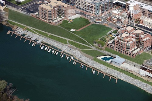 Rocketts Landing is home to Richmond’s first and only private marina on the James, bringing a new level of boating activity to the River City. This 2000-foot-long, floating-dock marina offers 88 state-of-the-art slips and will accommodate boats up to 60 feet in length. The marina will also offer restrooms, showers, a fueling dock, sanitary pump, water and power hook-ups, and a harbormaster. The marina’s first stage opened in May 2009 and includes 40 slips that span the first phase of Rocketts’ waterfront. Annual, seasonal and month-to-month leases are now available, with first priority going to Rocketts Landing residents. Boaters may choose between 30 foot, 35 foot and 45 foot slips, each accommodating boats up to that length. The pool is for residents only of Rocketts Landing