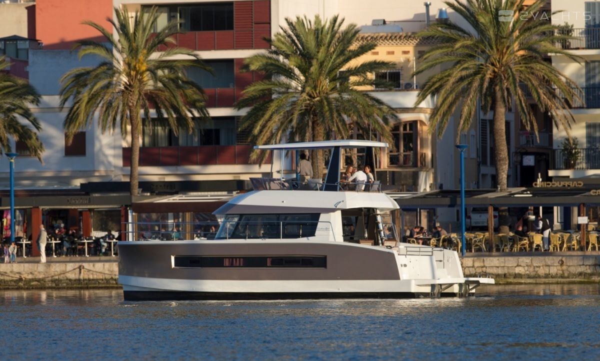 Fountaine Pajot MY 37 is a power catamaran with flybridge, bathing platform and passenger cabins. The fiberglass hull of the vessel with a length of 11 meters can be painted at the request of the customer in various shades. The shipyard also allows changes to the interior of the vessel, which David Comey and David Boudgourd worked on, and the installation of additional equipment on it.