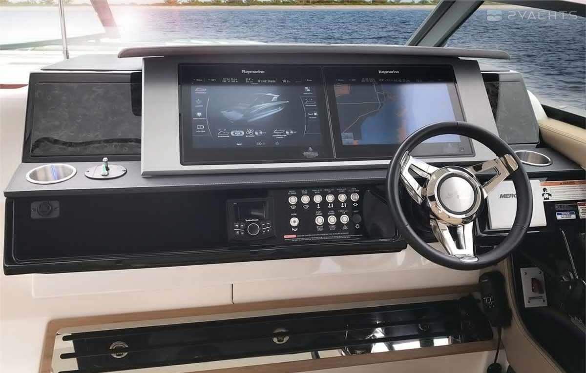 The Sea Ray SLX 400 is equipped with an electrically operated bonnet motor, LED cockpit lighting and short circuit proof wiring. The model has been produced by the shipyard of the same name since 2017, which won the Innovation Award in the same year. The vessel has received CE certification for going to sea, but no further than 200 miles from the coastline.
