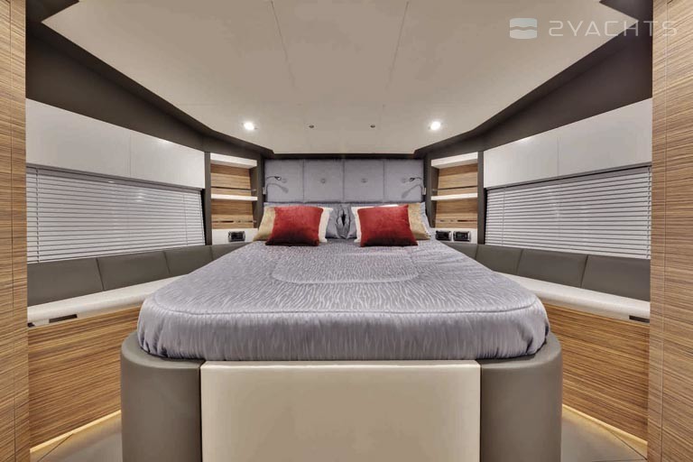 The master cabin, located across the entire width of the hull, with a double bed and a separate bathroom is located on the lower deck. There is a VIP cabin with a double bed and dressing rooms at the bow, while the other guest cabin, located on the port side, has 2 single beds. Each cabin has a bathroom with shower.