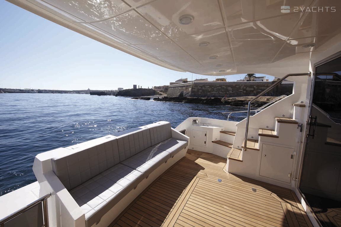 Astondoa 52 Fly is a planing ship with a flybridge of 16 meters in length and a draft of 0.8 meters, the launch of which was launched in 2014. The yacht is distinguished from its predecessor (model name Astondoa 52 Flydridge) by a darkened panoramic glazing of the cabin and a black antenna arch above the flybridge.