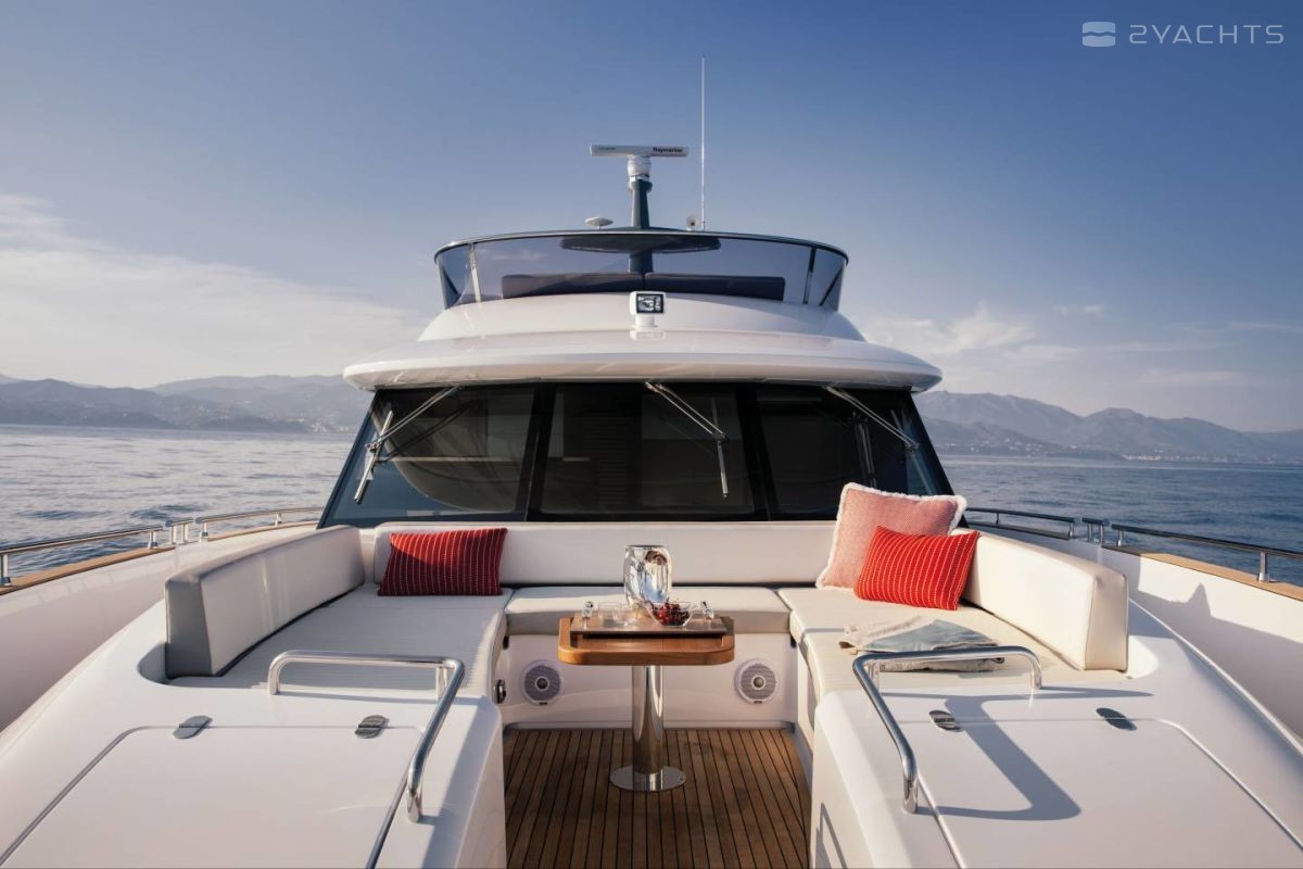 On the flybridge, considered one of the largest among yachts of this type, there is a duplicate control post, a stern terrace and a recreation area in the bow.