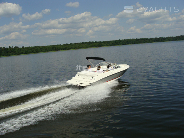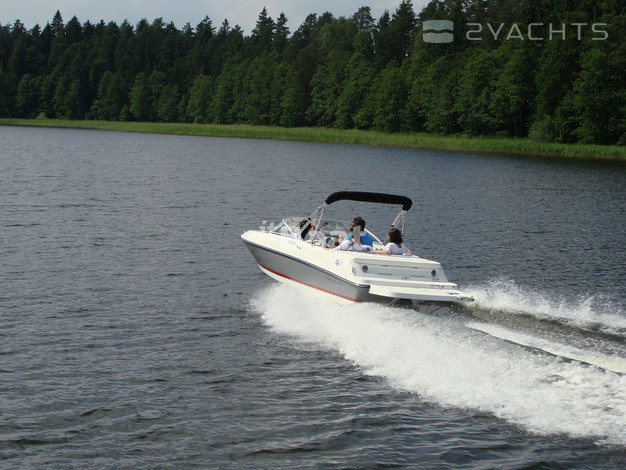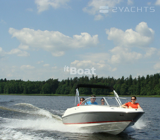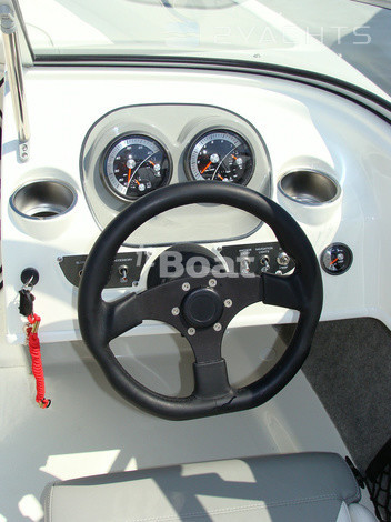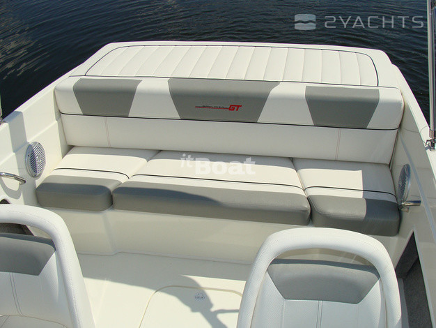 Bayliner 175 GT3 is a sporty version of the previous model, the 175 Bowrider. The engine has only one — carbureted 3.0 L MerCruiser rated at 135 HP, but for boats weighing 908 kg this is enough to at maximum speed, accelerating up to 39 knots. Far at that speed, not leaving the tank accommodates a total of 79.5 liters, but if you reset the cruising speed of 21.7 knots, the fuel consumption will be quite reasonable 17 liters per hour. The sporty character of the boat is emphasized in the interior by using parts of stainless steel and two-tone seat upholstery, reminiscent of sports car seats. Nose Bayliner 175 GT3 is V-shaped sofa with lockers under removable cushions and two handles that serve as a railing. In the main cockpit two adjustable chairs, helm station with two Cup holders and aft sofa.