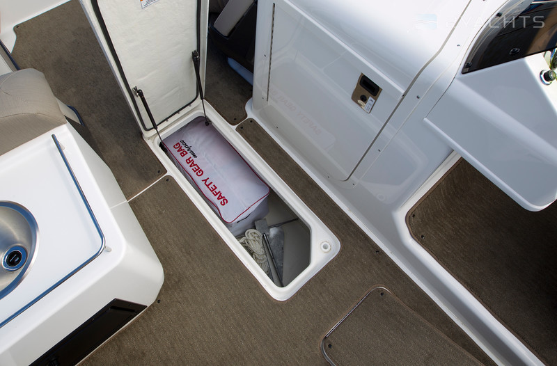 The model is equipped with three options for outboard motors with a capacity of 150, 200 and 250 horsepower. The speed of the boat is limited to 24 knots, in cruising mode it is 22 knots. The capacity of the fuel tank is 151 liters.