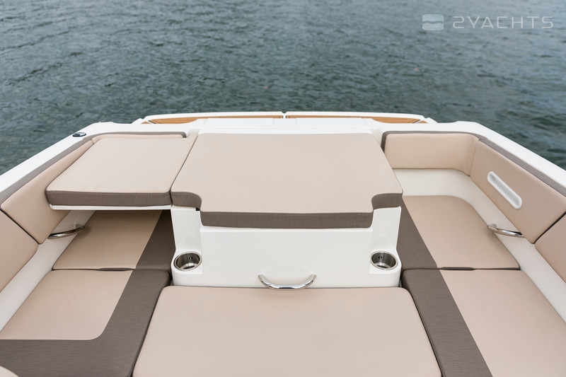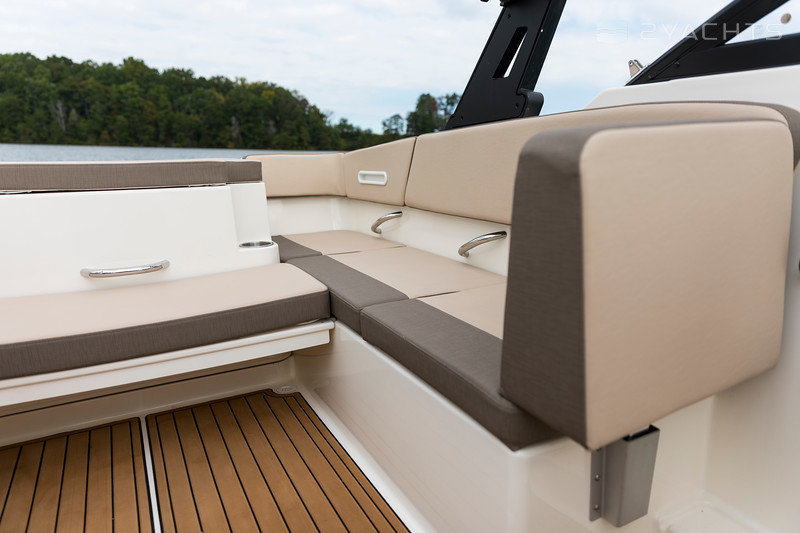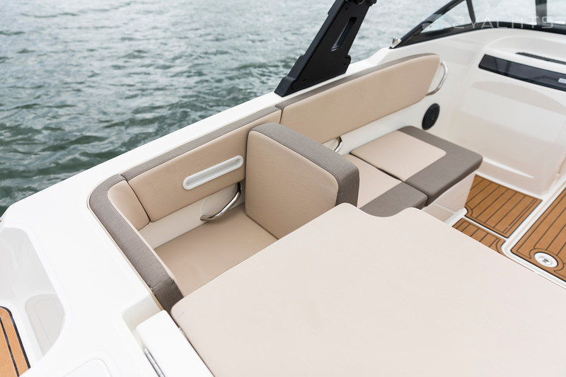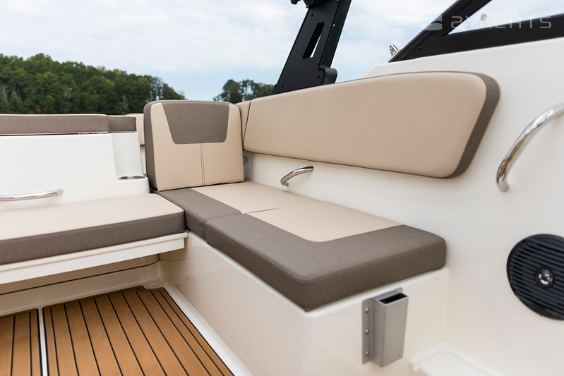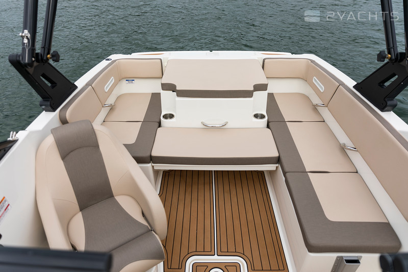A distinctive feature of the design of the model is an expanded nose that distinguishes it from earlier representatives of the series. It has an outdoor area with several seats and pillows. You can go to it through a special passage in the windshield. On the left side there is a compartment for storing water skiing, and a towing rack is installed at the stern.