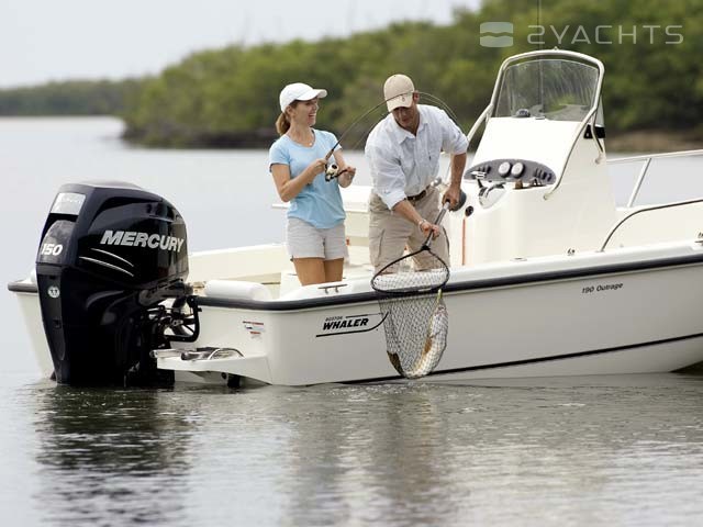The 190 Outrage has been launched by Boston Whaler since 2014. It has CE (C) certification and can be operated within the coastal zone. The hull of the boat is made of fiberglass, has a length of 5.74 meters and a width of 2.43 meters. It is equipped with eight seats, and its carrying capacity is 930 kilograms.