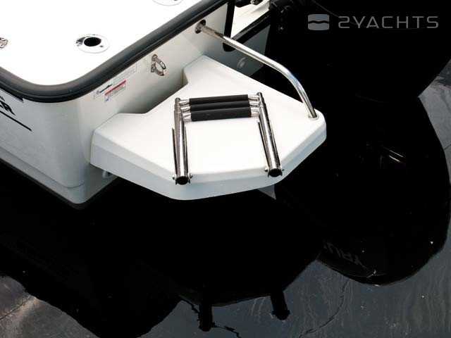 The Boston Whaler 210 Montauk is equipped with two folding chairs, an aerator and additional fishing rod mounts. On both sides there are metal railings and platforms for access to water, one of which is equipped with a folding ladder. An outboard motor with a capacity of 150, 175, 200 hp is installed on the boat Its fuel supply is 252 liters.