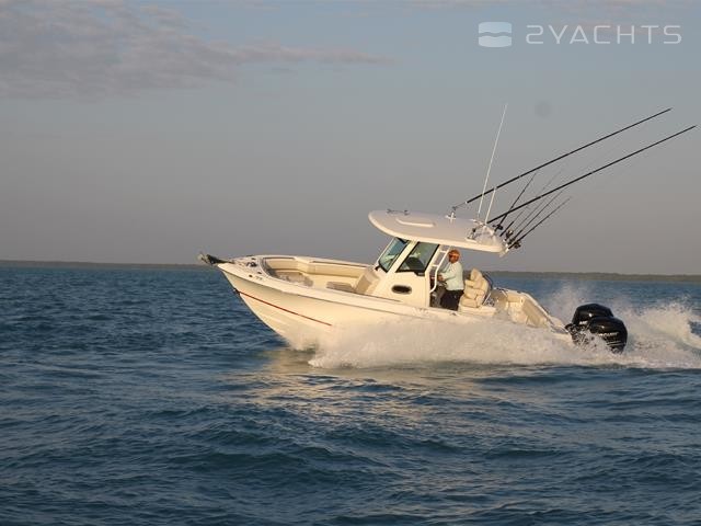 The 250 Outrage has been available at Boston Whaler since 2009. The pleasure boat has a fiberglass hull with a length of 7.75 meters and a width of 2.74 meters. Carrying capacity