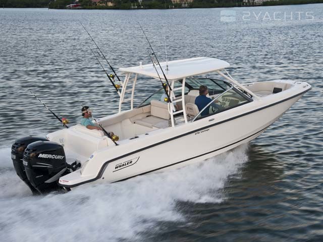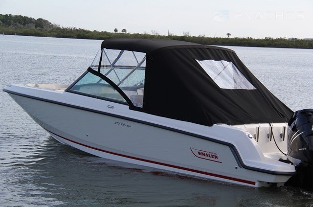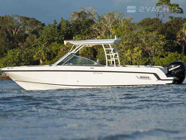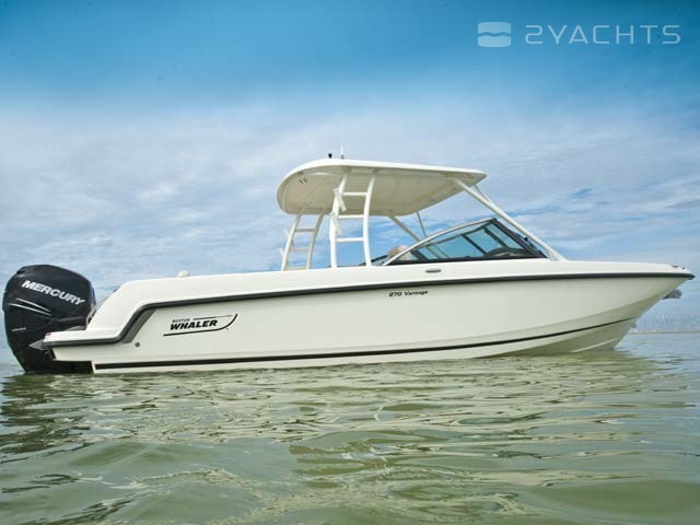 The pleasure boat Boston Whaler 270 Vantage has been in production since 2014. It has a body made of fiberglass reinforced with a length of 8.61 meters and a width of 2.74 meters. The vessel is equipped with seats for twelve passengers, and its carrying capacity is 1679 kilograms.