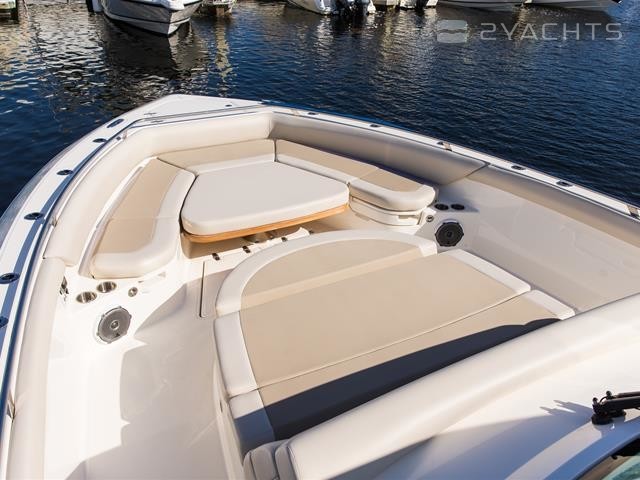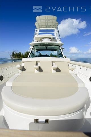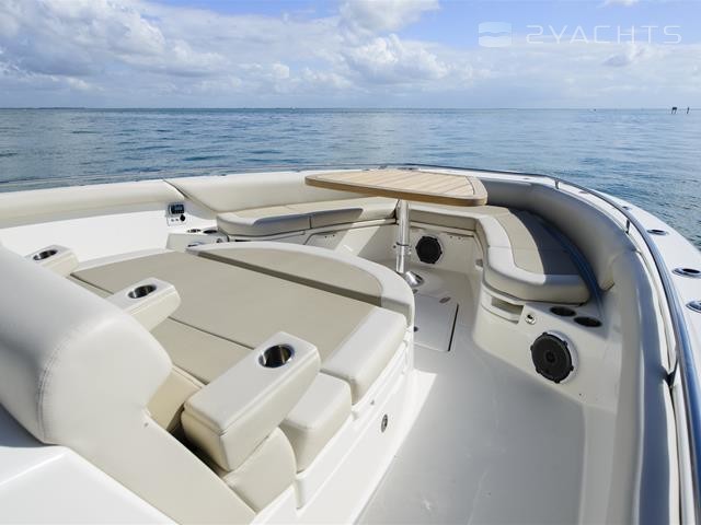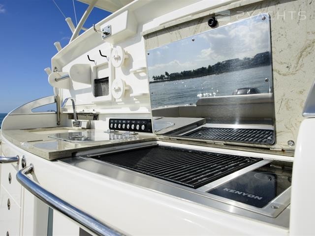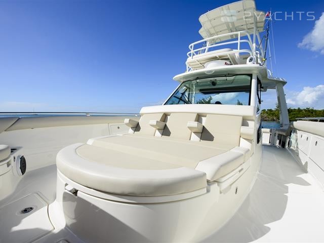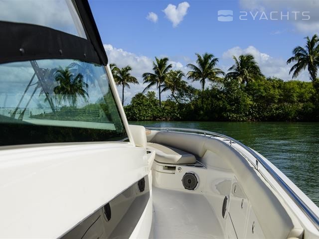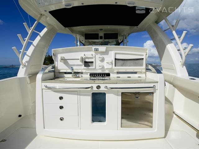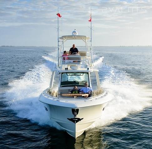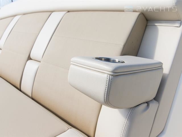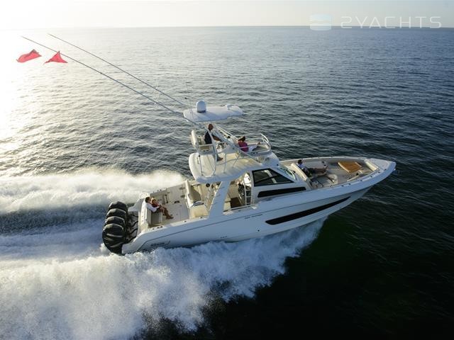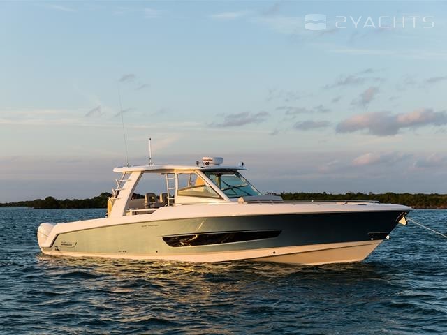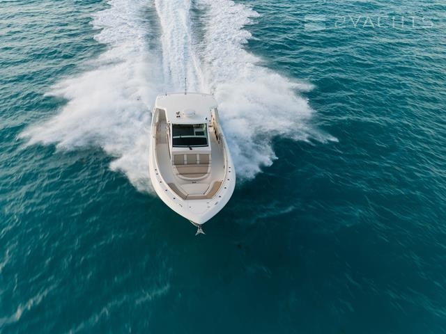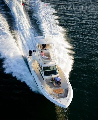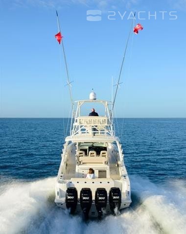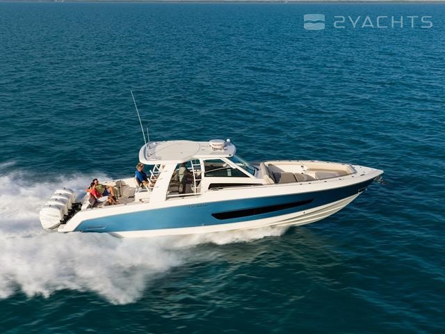 The Boston Whaler 420 Outrage is equipped with four 350 horsepower outboards. The capacity of the fuel tank is 2,271 liters, and the water tank is 227 liters.