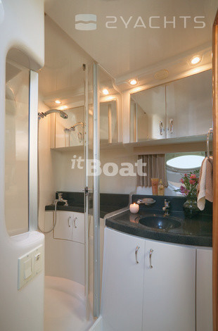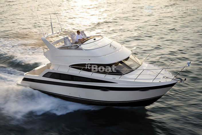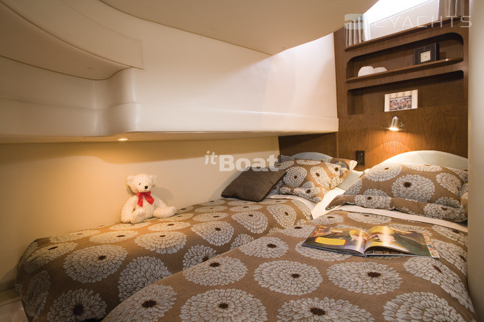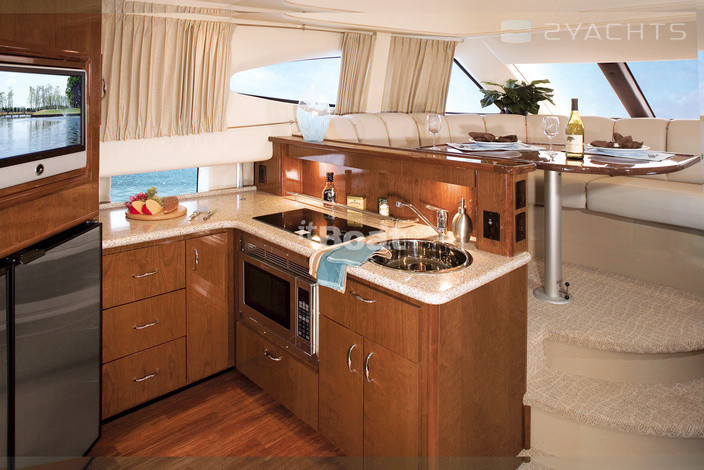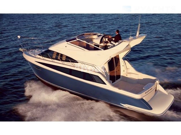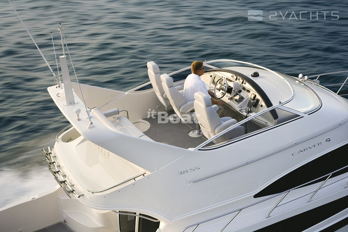 In the latest incarnation of this motor yacht Carver 38 Super Sport, with a flybridge, got bottom speakers Volvo Penta IPS400, allowing it to accelerate to a modest 30 knots. Although the Builder still offers six engine options with the shafts, none of them justifies the name Super Sport. Very spacious by the standards of this class, a salon and a full galley on the main deck are single and very cozy space. On the lower deck only one bathroom for two cabins, but it is normal size and even with two inputs. Control as other models Carver made to the flybridge, where passengers can make the company the captain, but not to sunbathe — has a little seat on the tank.