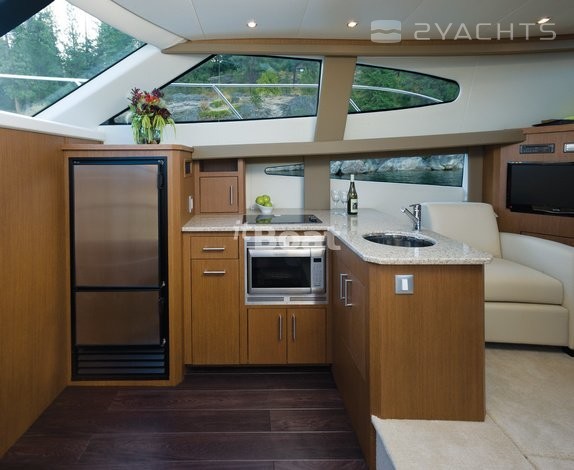 arver ockpit 41 Motor Yacht is a typical "American" on the outside and inside. This flybridge motor yacht can considerably surprise and even scare the unprepared European yachtsman. Instead of a wheelhouse the spacious living room flaunts a real kitchen with dinette, and console equipped only on the flybridge. The master cabin is located aft and given a separate entrance from the cockpit, unprecedented in Europe, the luxury for 12-meter boats. Finally, her origin issue rare we have gasoline engines Crusader power 330-385 HP, with which the yacht can reach up to 30 knots. Despite these oddities and unusual Old World appearance, with the habitability and seaworthiness have arver 41 all right.