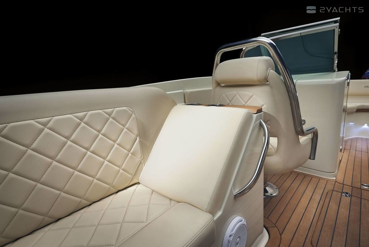 Chris-Craft Launch 27 — universal bowrider, built in the style of the classic racing runabouts. This boat suitable for day sailing in company or without, to practice water sports, as well as the crew of the boat to a large yacht. Cockpit and nose will accommodate up to 10 people. If you want, here you can eat — a small table is easily mounted in the center of the cockpit and also easily removed. Supplies and other needs during the journey, things for a picnic you can hide in lockers and under sofas. With somewhat retro exterior, Launch 27 thus demonstrates a super-modern suspension, which the creators of the first racing runabouts have not even dreamed of. The boat comes on plane in less than 6 seconds. At the speed of 29 knots Launch 27 consumes about 30 liters per hour and will be held on a single tank of approximately 250 miles (tested the boat with the engine capacity of 320 HP). At maximum speed (about 50 knots), the boat will be three times gluttonous. Engine cover opens to the side of the cockpit — so it is easier to maintain. In the normal position the engine cover is a soft bed that will appeal to fans soak up the sun.