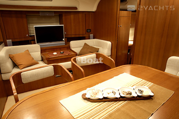 Elan Impression 514, as befits a flagship model, is the most luxurious and comfortable model of the shipyard. The boat has an elaborate interior space: even if you select a layout with five staterooms premises are striking in their scope. Interestingly the original decision hinged swim platform, at the same time covering the hangar with an inflatable boat with folding transom part of the flooring of the cockpit folds into the ladder. Raising a ladder to access the boat. Sailing arms 514 may be performed in two variants: sloop and tender. Like other yacht series Impression the mast, keel and steering system is made more reliable than other comparable length of the boat.