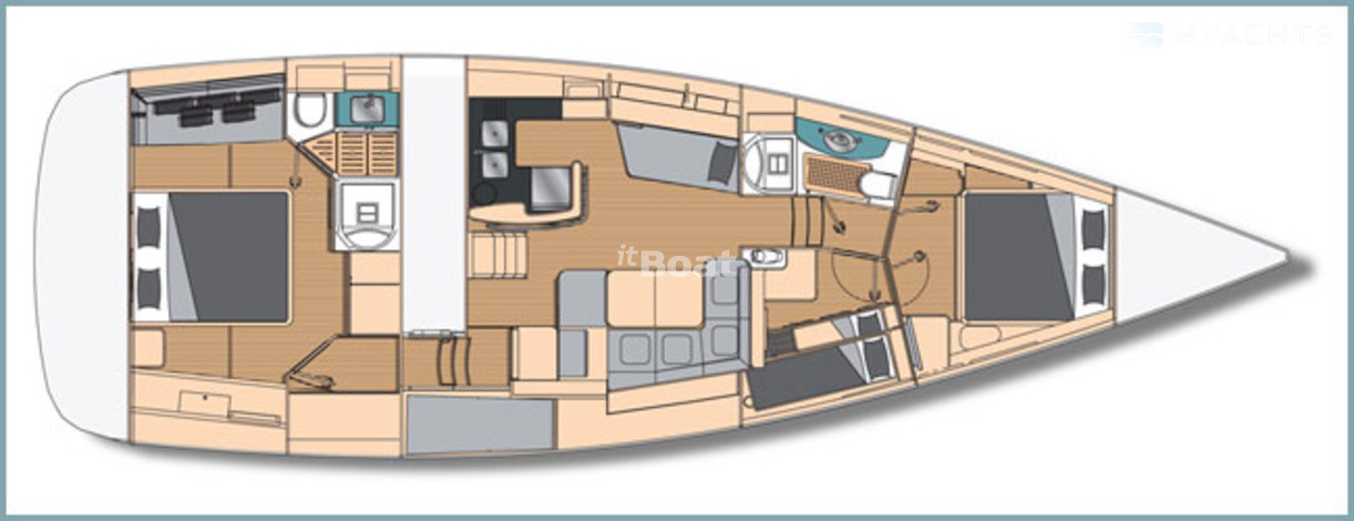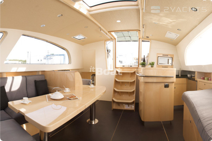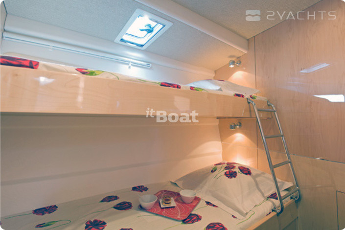 Feeling 52, in fact, is a little shorter and cheaper version of the flagship yachts are Feeling 55. Almost all planning, architectural and stylistic solutions older sisters without exception migrated to the new model. Still developing the concept of "manimaran" — single yacht with the advantages of vessel catamaran scheme: shallow draft (130 inches with keel up), a large capacity and excellent driving performance. Unusual engine two auxiliary engines power 55 HP each also migrated to the flagship yacht of this model.
