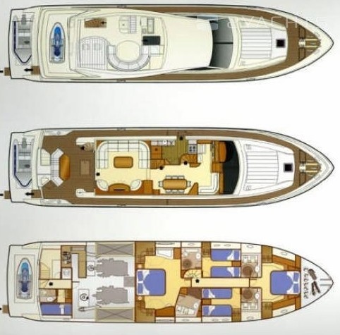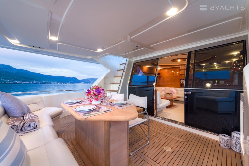 Embodying optimum space management, the luxury Ferretti 730 is the perfect boat for families or couples, accommodating up to 8 guests. A master, VIP and two double cabins provide comfort below the deck, while outside provide spacious outside areas such as the front deck, aft dining area or flybridge with ample space.
