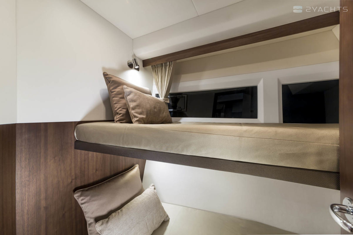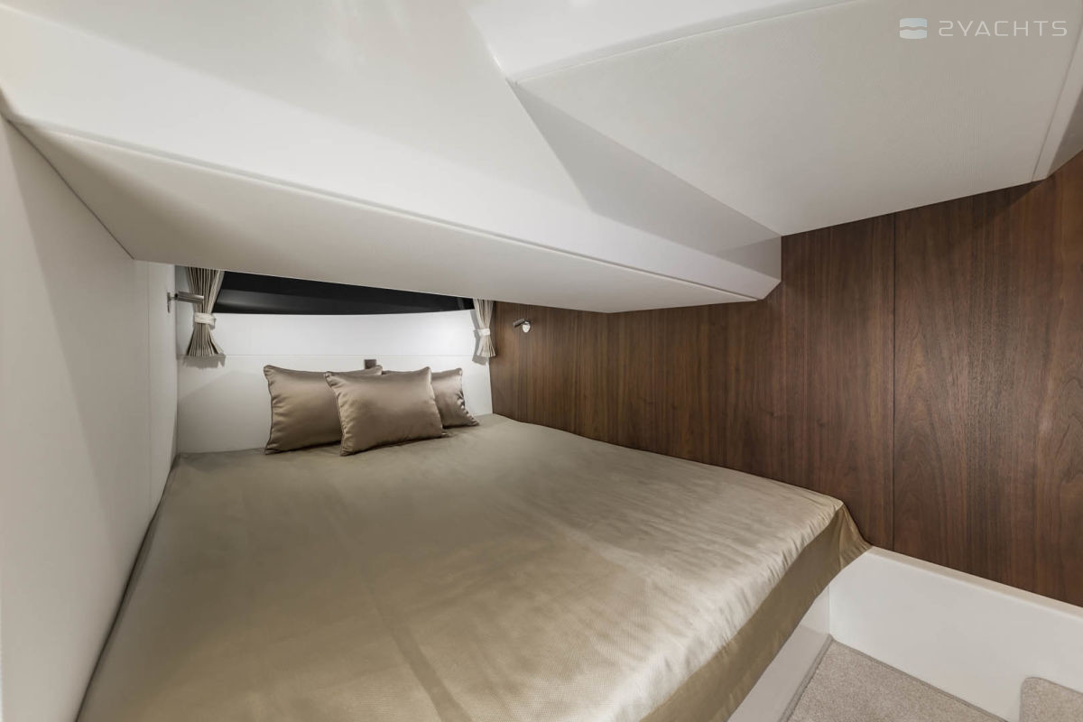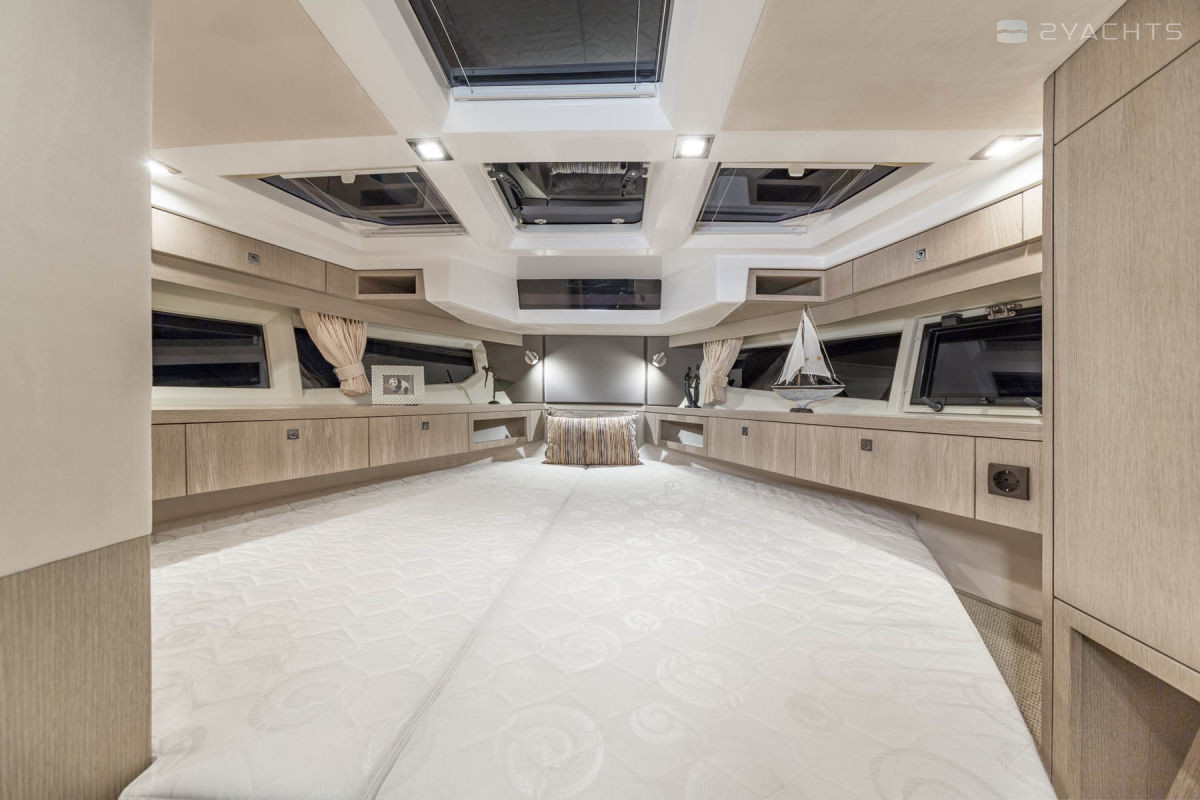 The yacht is available with two or three cabins with high ceilings and panoramic windows. Galeon shipyard enables the customer to create a unique yacht design by choosing materials and their textures.