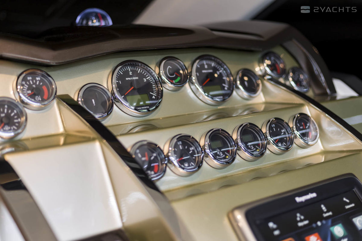 The ship is equipped with Mercruiser 4.5 gasoline engines of 250 liters. or diesel analogues of Volvo D4. With a total volume of two fuel tanks of 800 liters, the yacht makes transitions without refueling up to 200 miles.