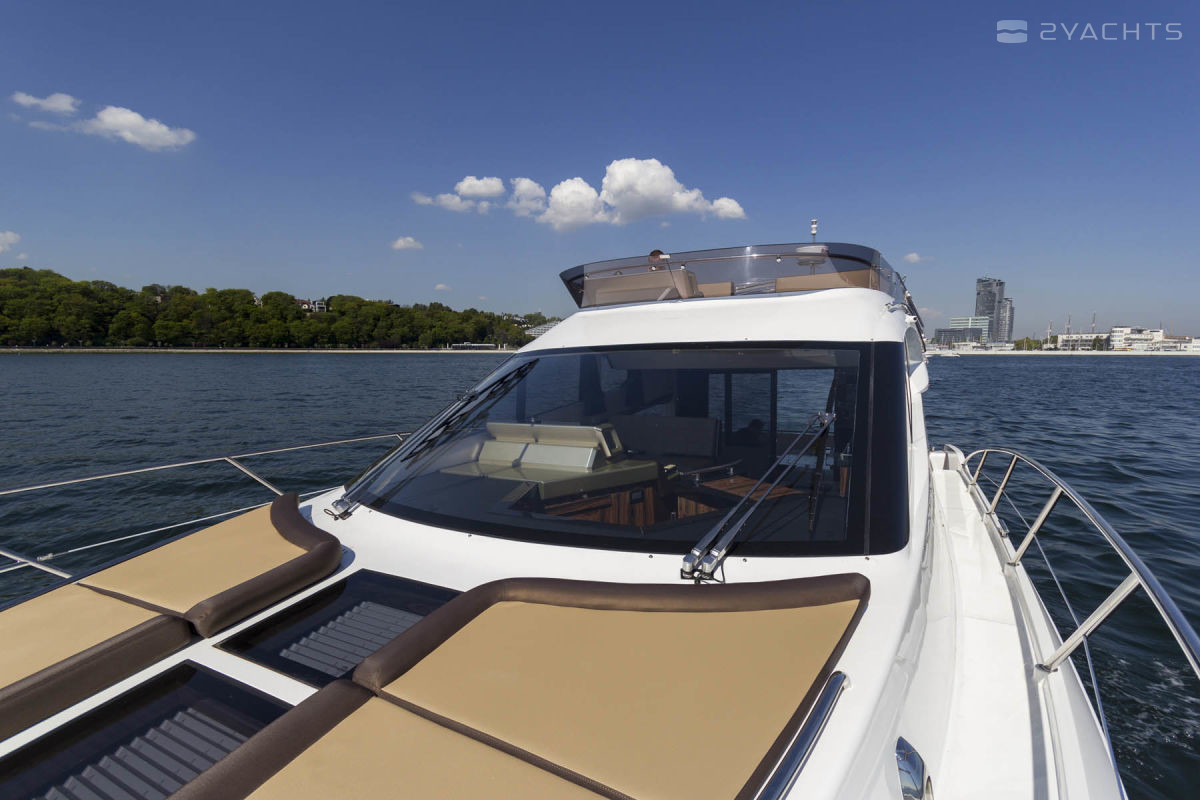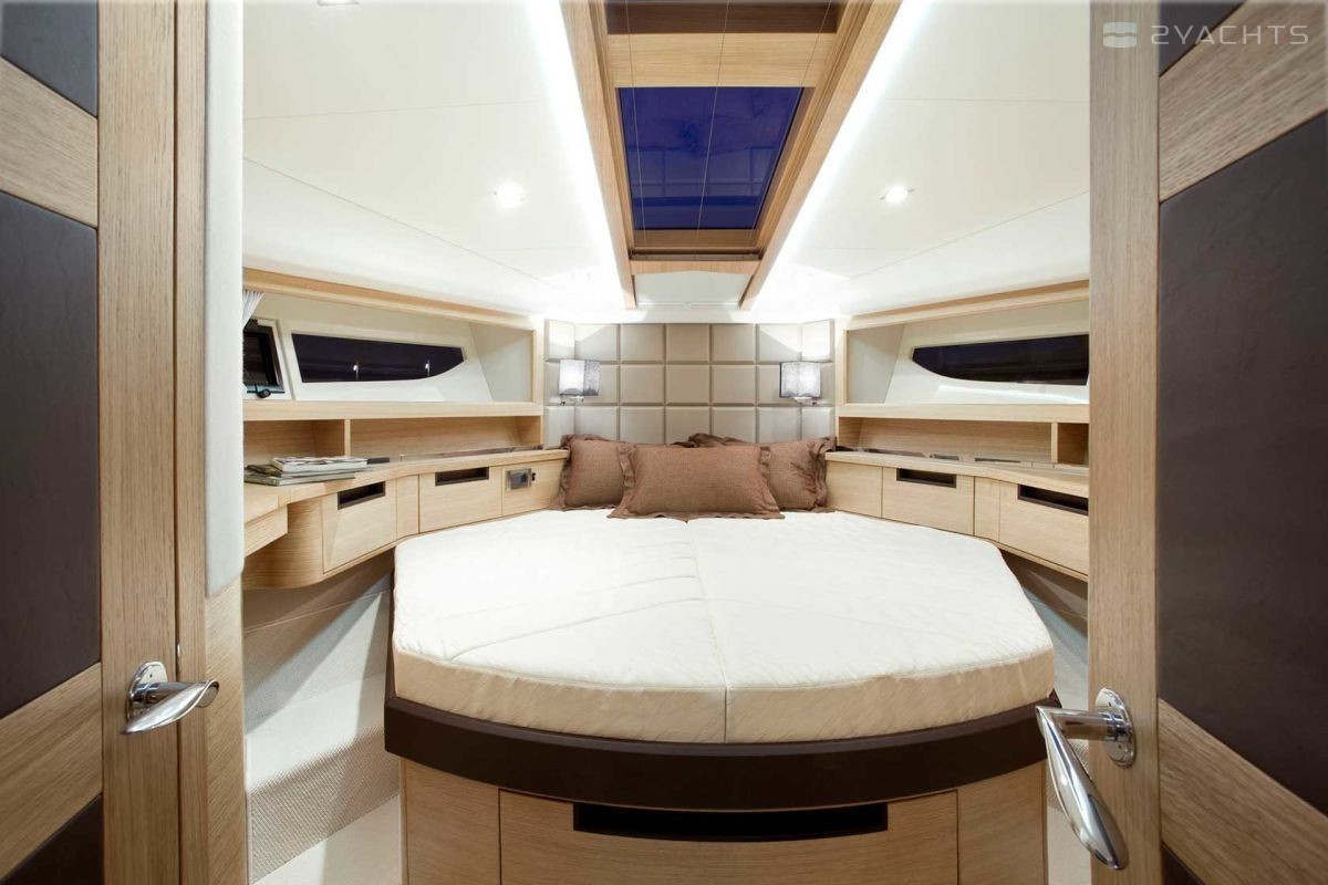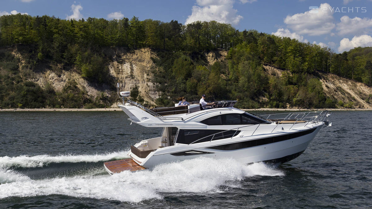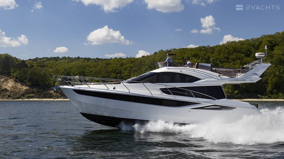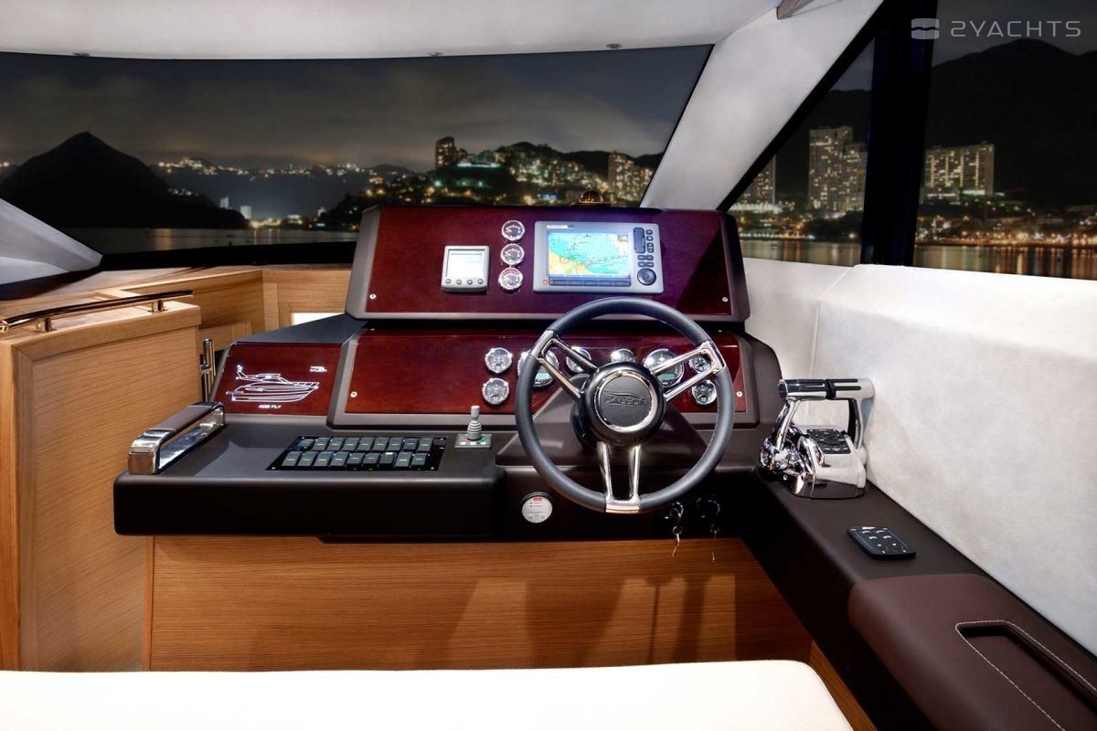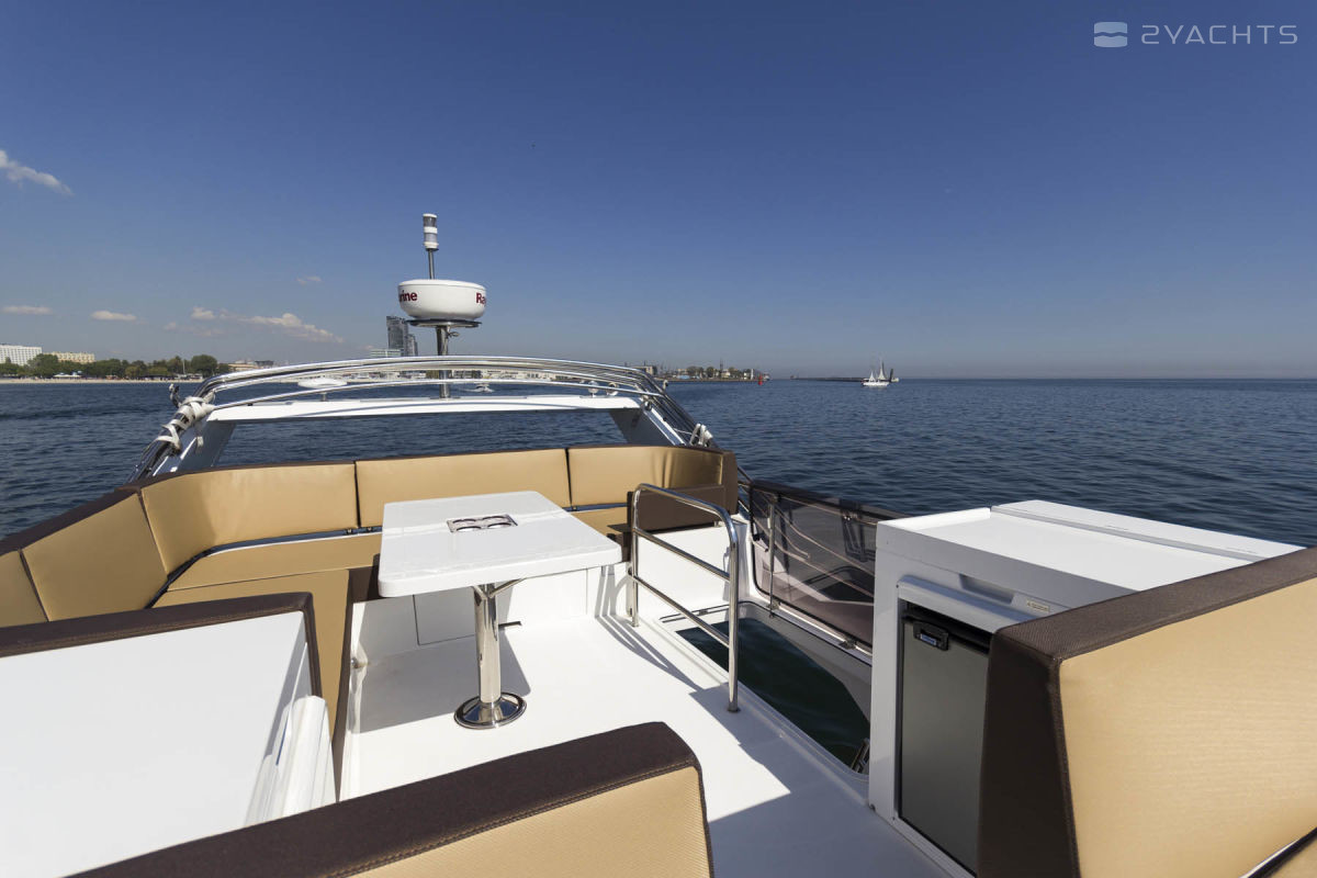 The Galeon 420 Fly was presented to the general public at the 2011 Fall Exhibitions in Cannes, Barcelona and Genoa. Galeon Architect and Designer, Tony Castro has upgraded the previous model in the series, the Galeon 400 Fly. The result is a planing three-cabin yacht with one of the most spacious interiors in its class. The model combines sports and classic style in decoration, using precious woods, high-quality textiles and accessories.