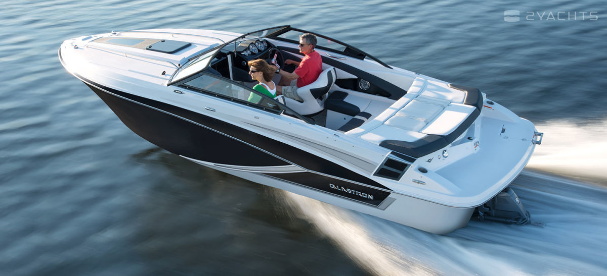 Sports pleasure boat Glastron GT 229 was first presented at the boat show in Detroit in February 2013. If you want to be noticed and stand out from the crowd of other boats, model Glastron GT 229 will give the opportunity to its exclusive two-tone body and excellent technical equipment. Vivid graphics exterior, spacious cockpit with U-shaped seat where you can enjoy the sun, comfortable cabin with sliding doors and a variety of additional options ensure a the pleasure of finding on Board. Thanks to the patented SSV corps to manage the boat quite easily.