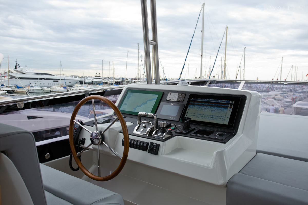 A large and bright salon Greenline 65 c nice interiors are the wheelhouse of the yacht and two relaxation areas. The galley is provided on the same deck and can be placed in the middle of the salon or outside in the cockpit. In any of these options, the dining area will be the opposite, which is handy for serving dishes to the table. The yacht's four cabins. Large master cabin with large side Windows, the VIP cabin is in the nose, also is not small, and a guest room with two beds. Each cabin has a bathroom. For the crew the fourth stateroom is located behind the engine compartment. In the spacious cockpit are sofa and a large table for lunch. From here you can go down to is equipped with a large hydraulic swim platform or up on the flybridge. There is a helm station with double sofa (left side), the table and wetbar; wherein the aft portion of the flybridge can be kept free. Another relaxation area with loungers, a sofa and a table located on the fore deck.Optionally yacht can be installed a hybrid power plant with photovoltaic panels and powerful batteries, with which the autonomy of the yacht can be significantly improved.