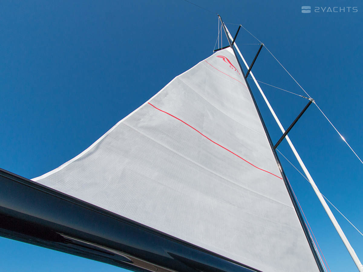 The total sail area of the model is 244.5 m². A stationary 150 hp engine is installed on it. The fuel tank holds 1,100 liters, the fresh water tank 900 liters.
