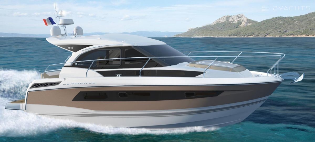 Jeanneau Leader 33 is a boat model produced since 2017. It has international CE (B) certification and can be operated at sea up to two hundred miles offshore. The hull of the vessel is made of fiberglass, its length is 10.44 meters, width - 3.32 meters, and draft - 0.96 meters. It is equipped with ten seats and four berths for passengers.