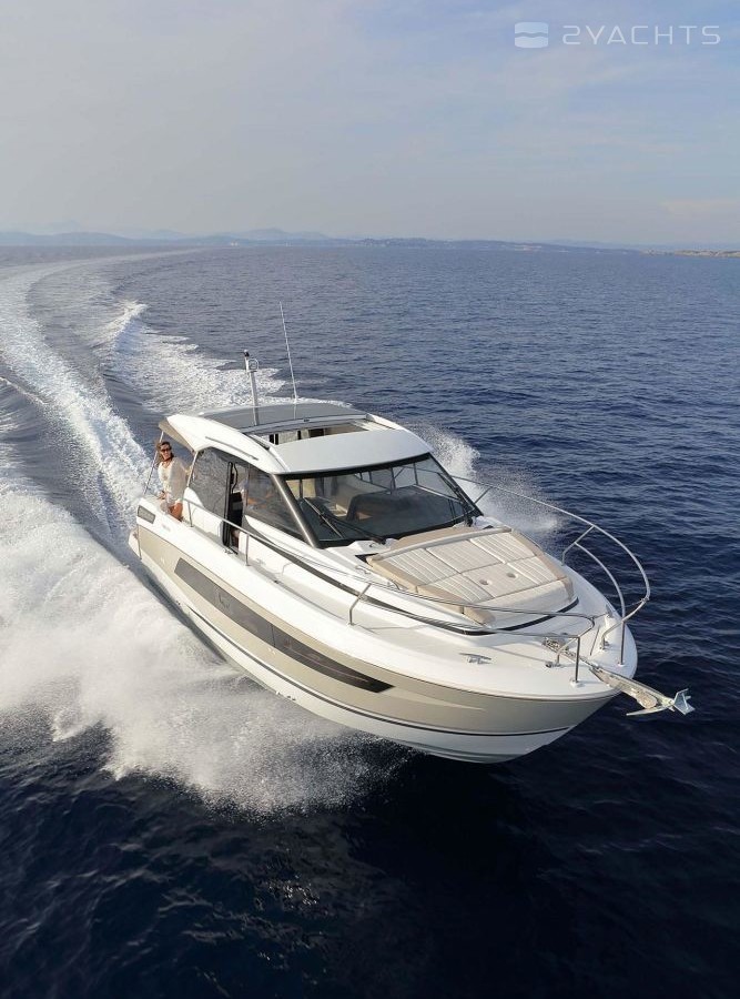 Jeanneau NC 33 is a pleasure boat model produced since 2018. International CE (B) certification allows you to go out to sea up to two hundred miles from the coast. The length of the fiberglass hull of the vessel is 10.53 meters, width - 3.32 meters, and draft - 0.96 meters. It provides ten seats and four berths for passengers.