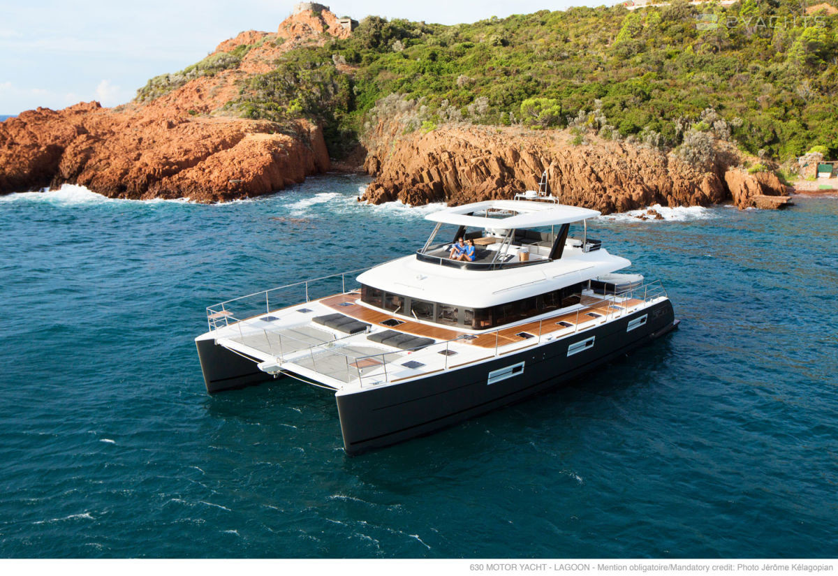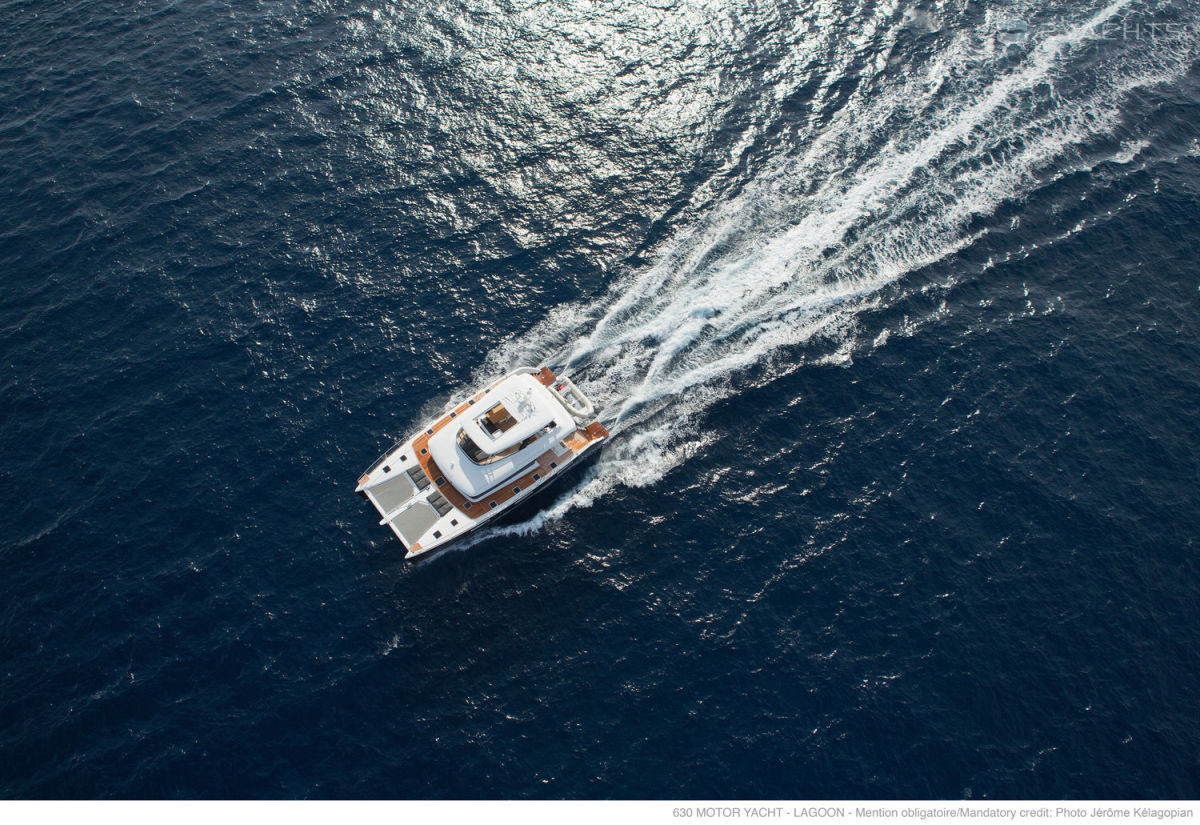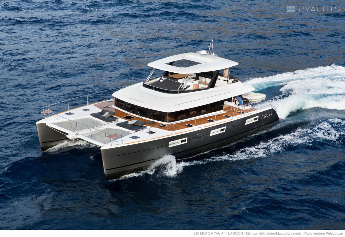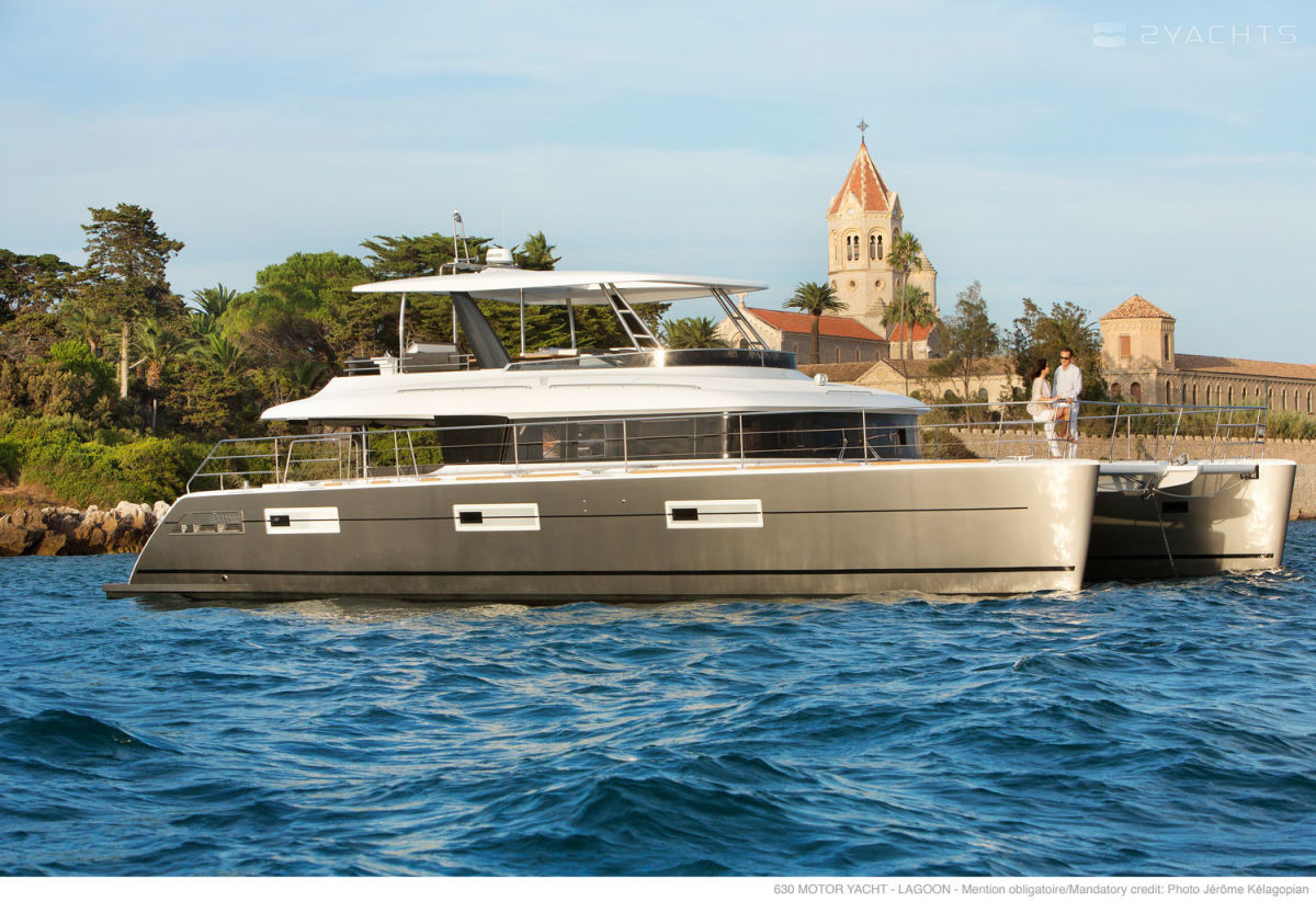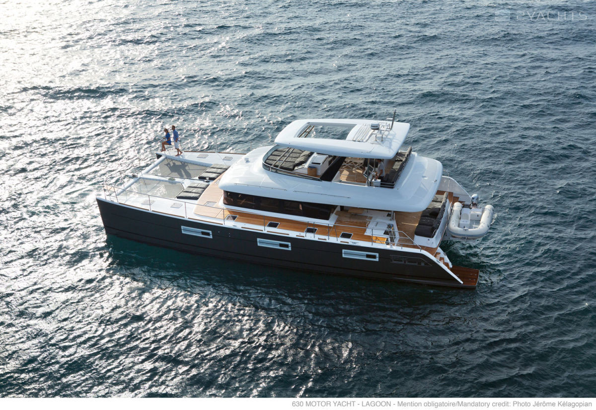 The walking model of the 630 MY catamaran has been produced by the Lagoon shipyard since 2014. It has international CE (A) certification and can be operated on the high seas. The length of the hull made of fiberglass is 19.5 meters, the width is 10 meters, and the draft is 1.5 meters. The vessel is equipped with twelve landing and six berths for passengers.