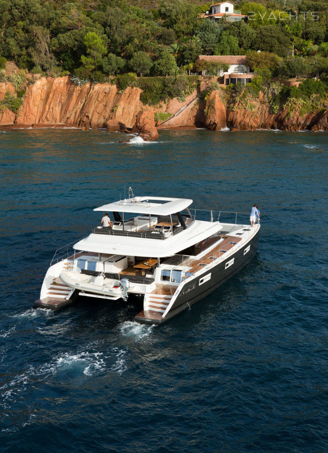 The catamaran is equipped with two 260 or 300 hp stationary motors. Its fuel tank holds 3,000 liters and its fresh water tank holds 960 liters.